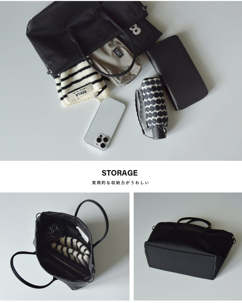 しっかりとマチを確保しているので、長財布、ポーチ、折り畳み傘など厚みがあるものもしっかりと収納。内ポケットには迷子になりやすい定期やスマホの収納に便利です。通勤・通学にも活躍します。