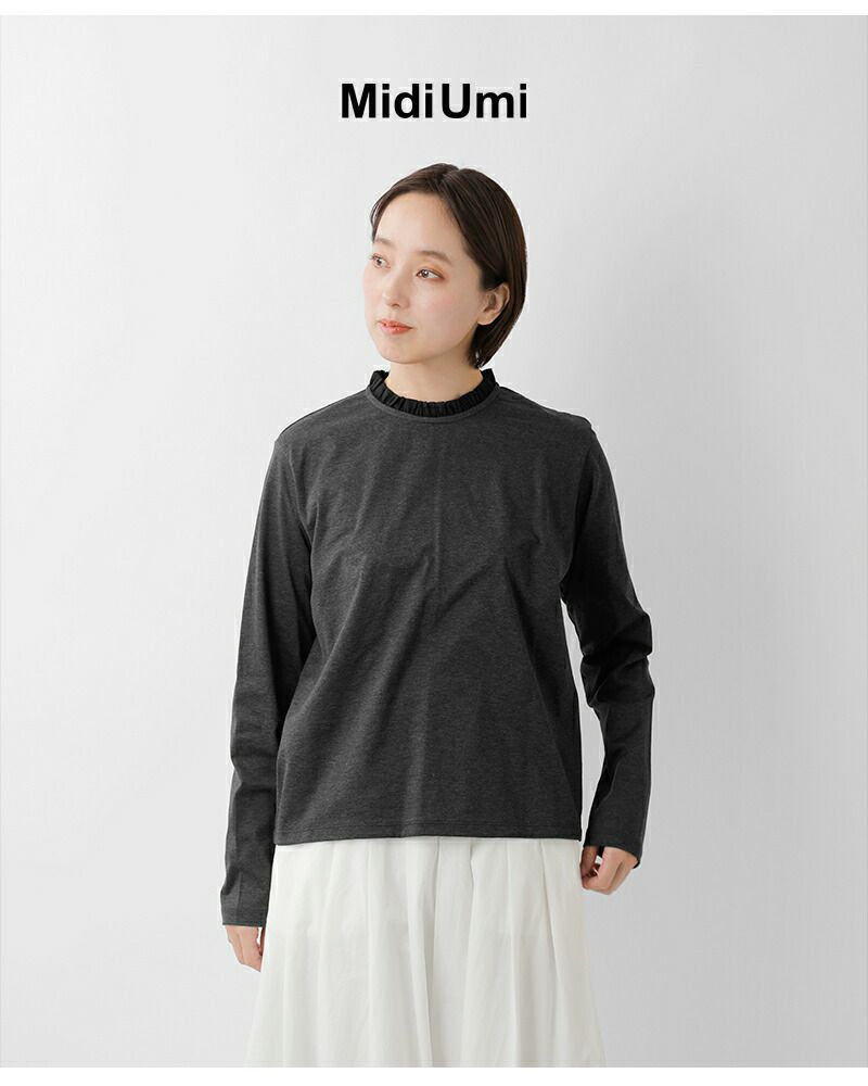 他の画像を見る 首元にさりげなくフリルを施し顔まわりをやさしく引き立てる上品なフリルネックプルオーバー MidiUmi ミディウミ コットン フリルネック プルオーバー 1-710101 レディース 2026ss新作 春夏 ¥ 10,780 ¥ 10,780 税込 カートに入れる お気に入りに登録する