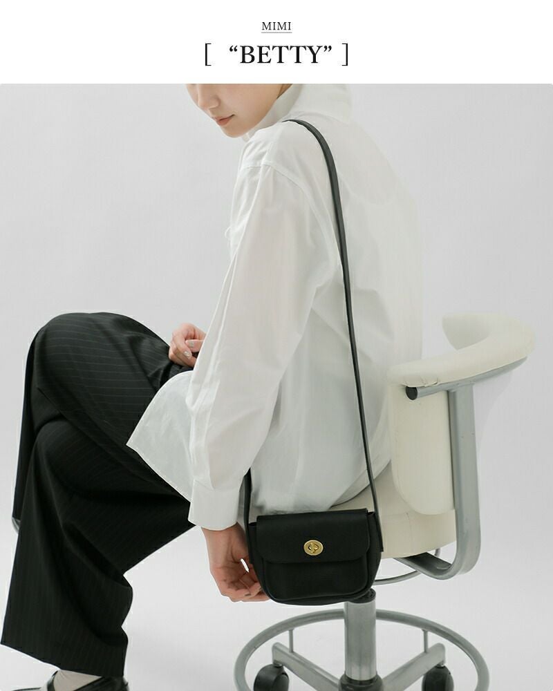 Mimi(ミミ)より、グレイニーベジタブルタンニンレザーショルダーバッグ “Betty”が届きました。しっとりと柔らかな質感のレザーを使用したミニサイズのショルダーバッグ。シンプルで洗練されたデザインは、必要な荷物だけをスマートに持ち運びたい方や、コーディネートのアクセントにおすすめです。マグネット仕様でワンタッチ開閉ができ、機能性もしっかり備えたショルダーバッグに仕上がっています。
