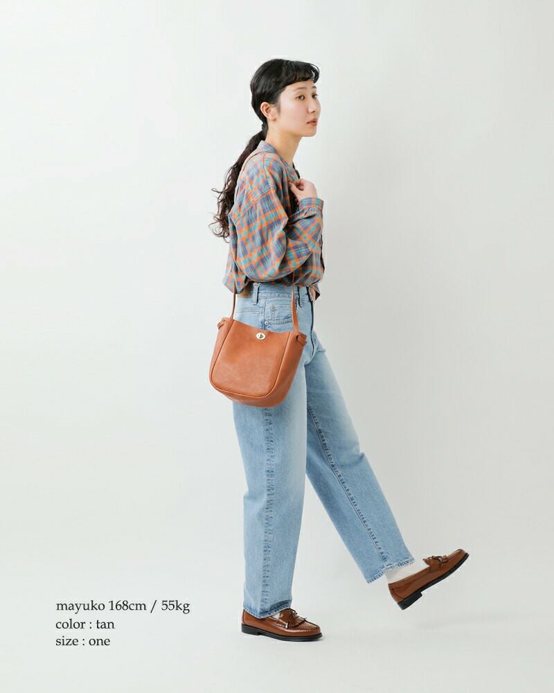 マチが広くとられ、コロンと丸みがあるので、持つだけで女性らしく愛らしい雰囲気に。