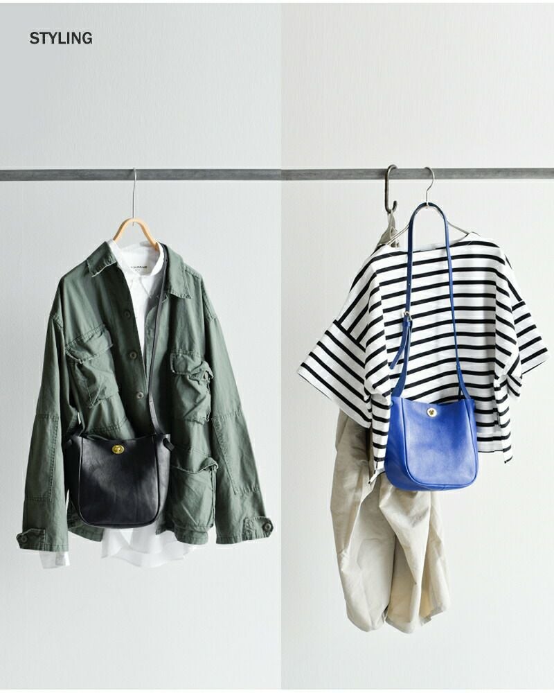 しっかりと長さのあるショルダーベルトで、肩掛けも斜めがけも可能。スタイリングに対して野暮ったくならないよう、丁度良い長さに調節できるのが嬉しいですね。