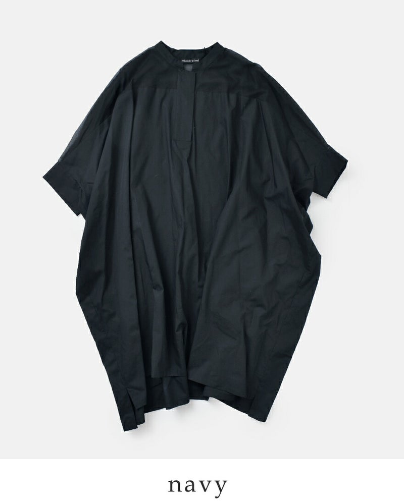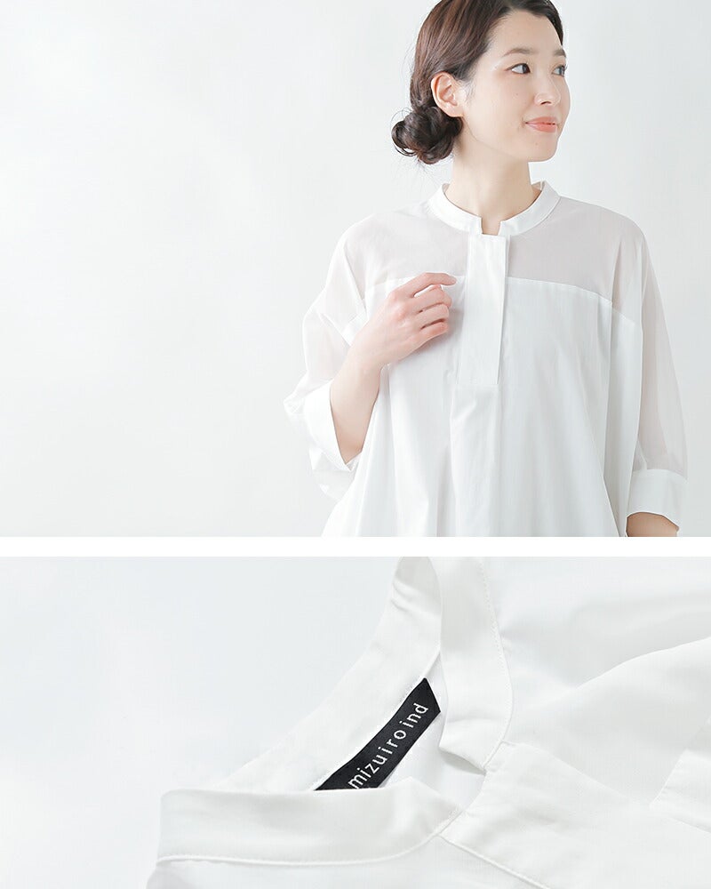 透け感のあるシアーボイル生地を使ったコットンワイドワンピース ミズイロインド mizuiro ind コットン 布帛 スタンドカラー シアー ワイド ワンピース 2-250101 レディース 2026ss新作 春夏2026ss新作