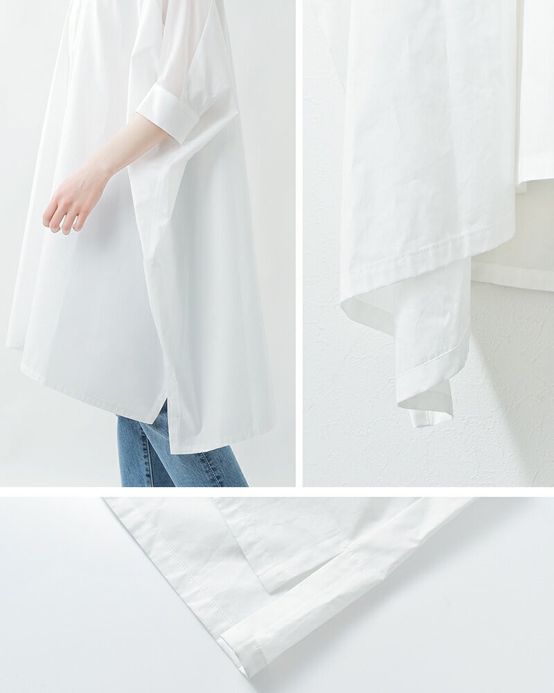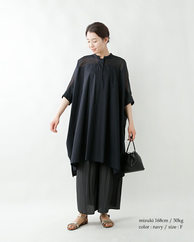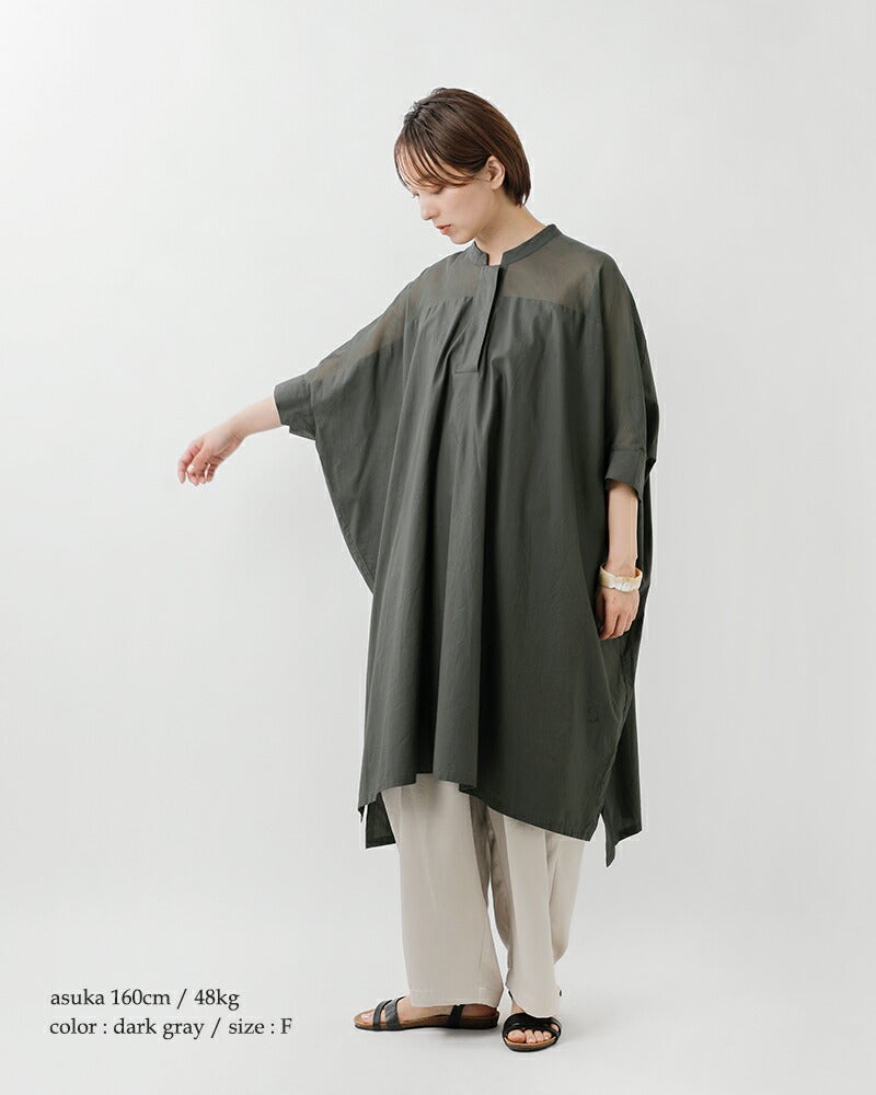 コットン 布帛 スタンドカラー シアー ワイド ワンピース 2-250101