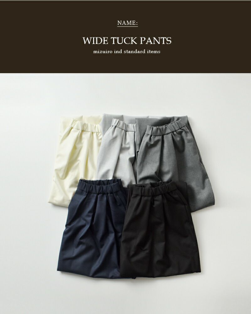 mizuiro ind(ミズイロインド)よりワイド タック パンツのご紹介です。滑らかで上品な質感のワイドタックパンツです。コーディネートに合わせやすいアイテムでベーシックながらかっこよく決まる1枚。mizuiro ind人気のデザインでストレッチもきいているので穿きやすさも体感していただけます。今季おすすめのパンツアイテムです。