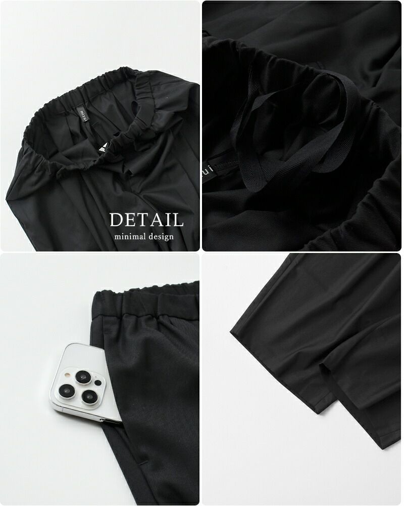 ウエストは総ゴムと調整ができる打ち内紐仕様で穿きやすいデザインに仕上がっています。さらっとした生地感で長い季節で着用可能。両サイドには便利なポケット付き。