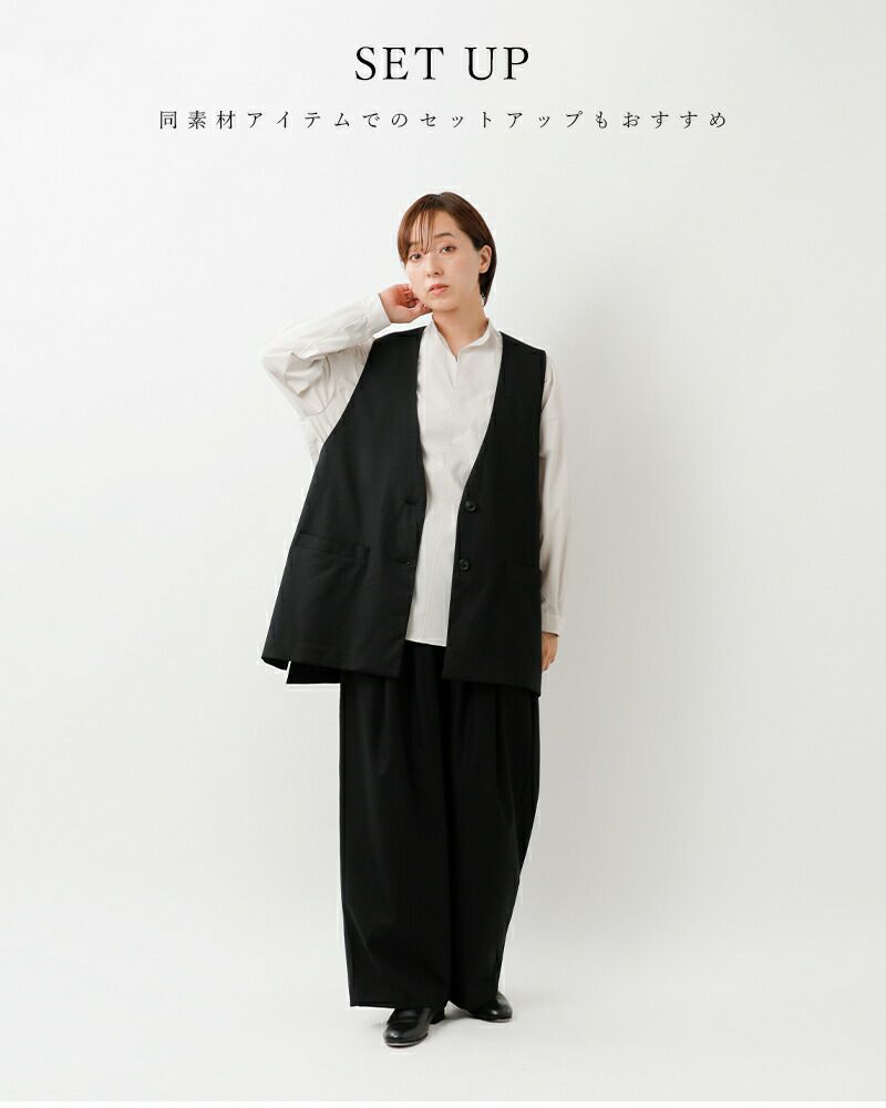同素材のベスト(3-230067)とのセットアップもおすすめで、都会的な大人なスタイリングをお楽しみいただけます。