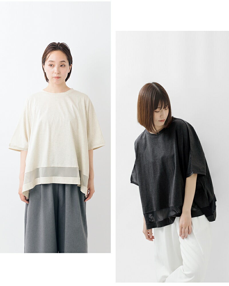 他の画像を見る 天竺素材とシアー感のあるメッシュ素材をポイント使いした涼し気なワイドTシャツ mizuiro ind ミズイロインド コットン メッシュ ミックス ワイド プルオーバー 2-210130 レディース 2026ss新作 春夏2026ss新作 カットソー ワイドシルエット ゆったり シンプル 無地 体型カバー 二の腕カバー カジュアル 上品 ¥ 9,680 ¥ 9,680 税込 詳細を見る お気に入りに登録する