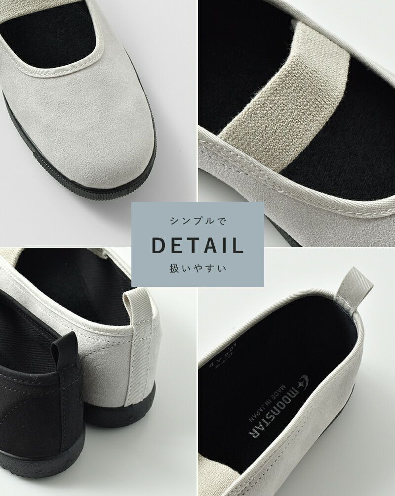 Moonstar(ムーンスター)より、バンドバレースリッポンシューズ“BAND BALLET”のご紹介です。ムーンスターの代名詞とも言えるデザイン「学生用の上履き」をベースに素材やカラーを一新させることでパンプスの様な女性らしい雰囲気に。マットな質感のヌバック仕様のシンプルなアッパーにゴムのバンドとミニマルなデザインなのでいろんなコーデに合わせることができます。