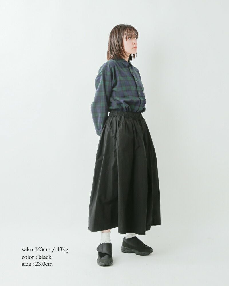 着用サイズ:23.0cm 普通の厚さの靴下を履いてサイズ23.0cmを着用して、サイズ感はつま先とかかと厚み共に良い大きさでした。マジックテープで留める位置を調整することで、履き口の広さが変わるので靴下の厚みによって微調整できるのが良さそうです。着脱も楽で軽く楽な履き心地でした。