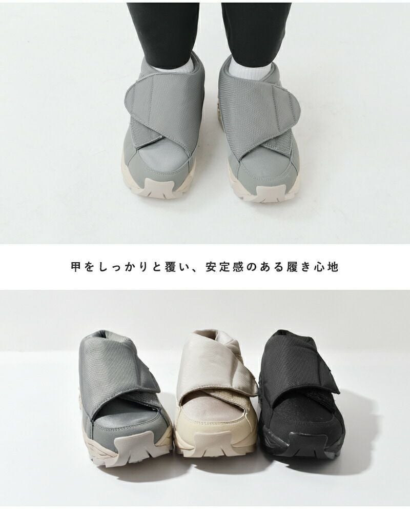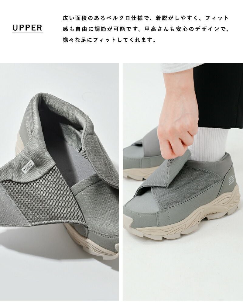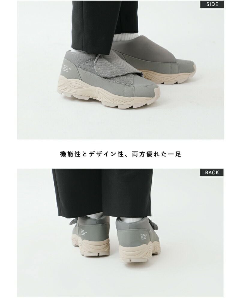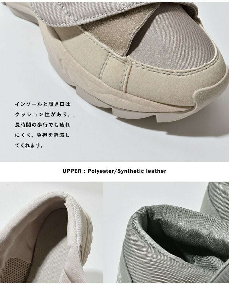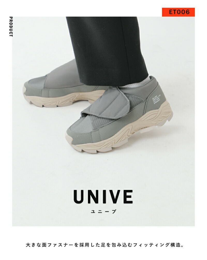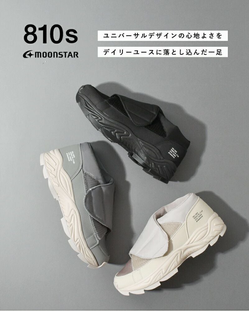 moonstar 810s(ムーンスター エイトテンス)よりフルオープンスニーカー“UNIVE”のご紹介です。ユニバーサルデザインの心地良さをデイリーユースに落とし込んだスニーカー“UNIVE”。アッパーにはポリエステルとSynthetic leatherを採用して、それぞれの素材の質感がワントーンでも立体感を作ります。ギザギザのソールは凸凹が大きくちょっとしたレジャーシーンにも対応。マジックテープで留める仕様なので履きやすく、包み込まれているような履き心地。アクティブなフルオープンタイプです。