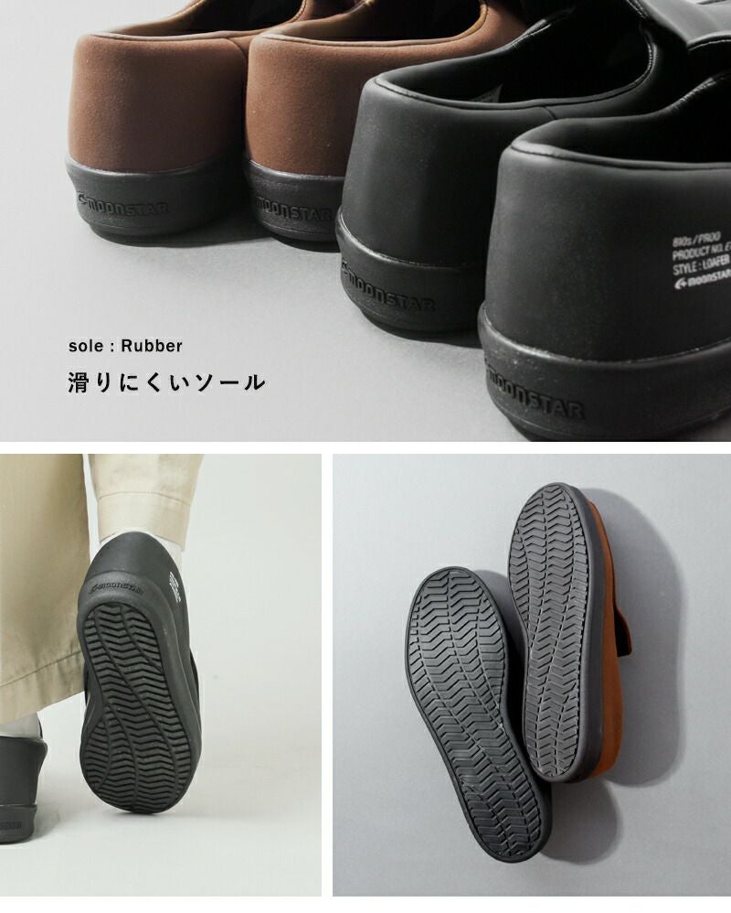丈夫で汚れに強く、ソールのグリップ力も◎。ローファータイプで、スタイリッシュな印象に仕上げ、見た目もクリーンな印象です。