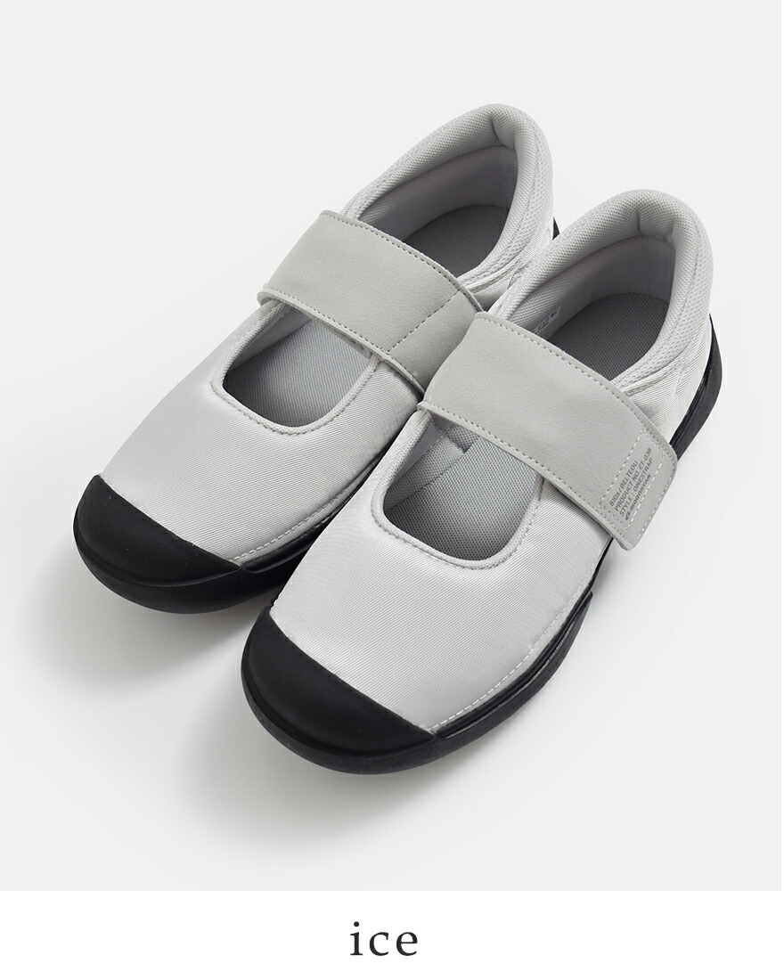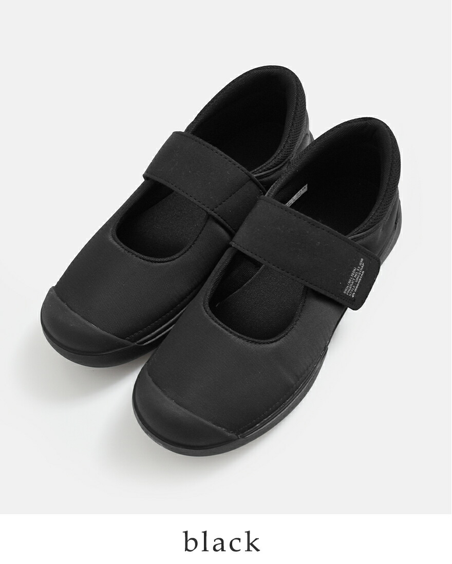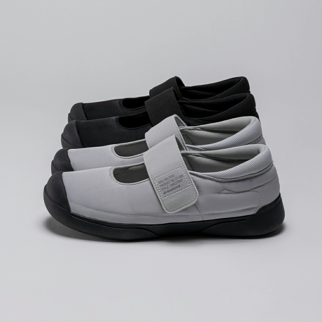 つま先にゆとりのあるラストを採用した「LITTEL STAR 02」をベースにしたデザイン。学生用の上履きのようなシルエットが懐かしさも感じさせる一足です。甲調整可能な面ファスナータイプの仕様でバンドが外れても靴が脱げにくく、転倒を防ぐ構造です。