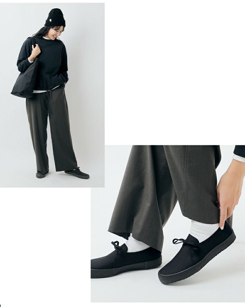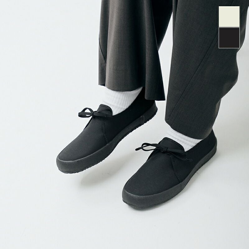履き口から伸びるシューレースがアクセントとなり、控えめながらも個性を演出。