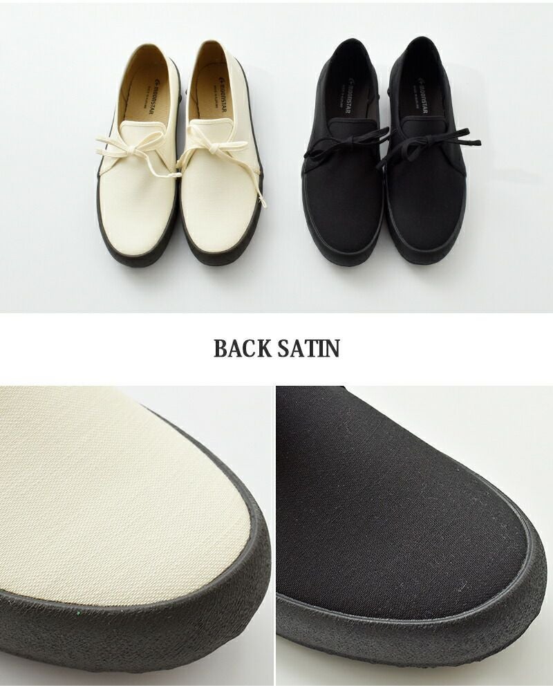 上質なバックサテン素材を使用したムーンスターのローカットシューズ「FOLKSY(フォークシー)」。
