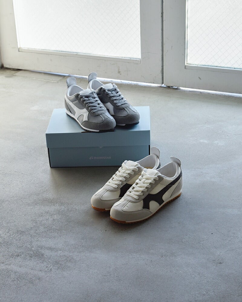Moonstar(ムーンスター)より、SKOOLER ジャガー カスタム スニーカー JAGUAR CUSTOMのご紹介です。長く学生に親しまれてきたスポーツシューズ、ジャガーシリーズをベースにしたトレーニングタイプ。メインの素材に目の細かい合成繊維と起毛素材を組み合わせたレトロな雰囲気のアッパーに、ボリュームを抑えたソールを組み合わせ、今のライフスタイルに合わせてモダナイズしました。