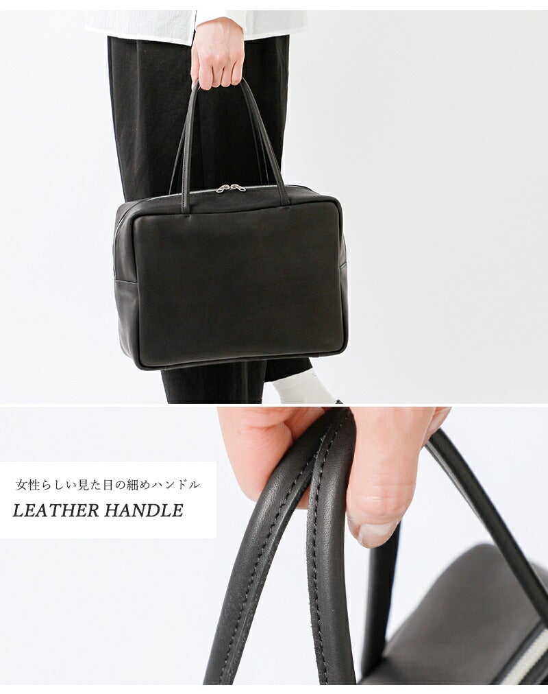細めで女性らしい繊細さのある持ち手、革の質感をふんだんに活かした袋縫いの縫製など、ジャパンメイドならではの丁寧なディテール。 プレーンなデザインでタイムレス・エイジレスにお楽しみいただける逸品です。デイリー使いはもちろん、フォーマルシーンにも対応出来ます。
