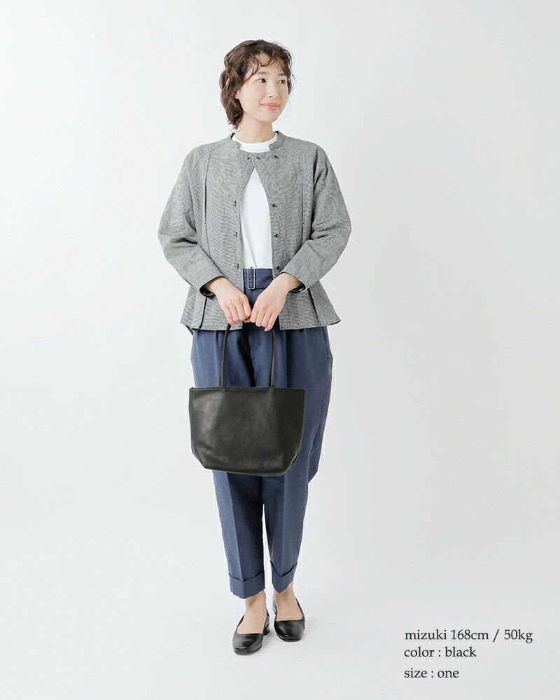 持ち回りがしやすい、ミニマルなサイズ感のレザートートバッグ