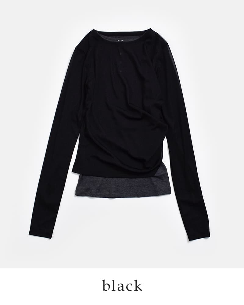 他の画像を見る 配色長袖ギャザー透け感重ね着着回しMANOFシアートップスヘンリーネックカットソーレイヤードセット MANOF マノフ シアー レイヤード カットトップス 80105-1043 2026ss新作 レディース ¥ 16,500 ¥ 16,500 税込 販売期間 2026/04/15 10:00 〜 カートに入れる お気に入りに登録する