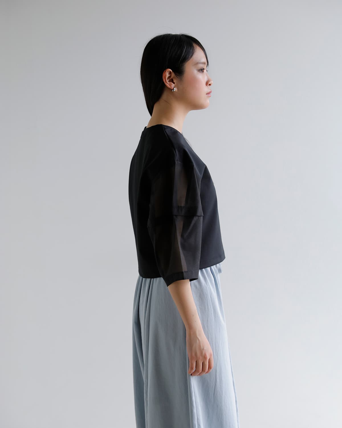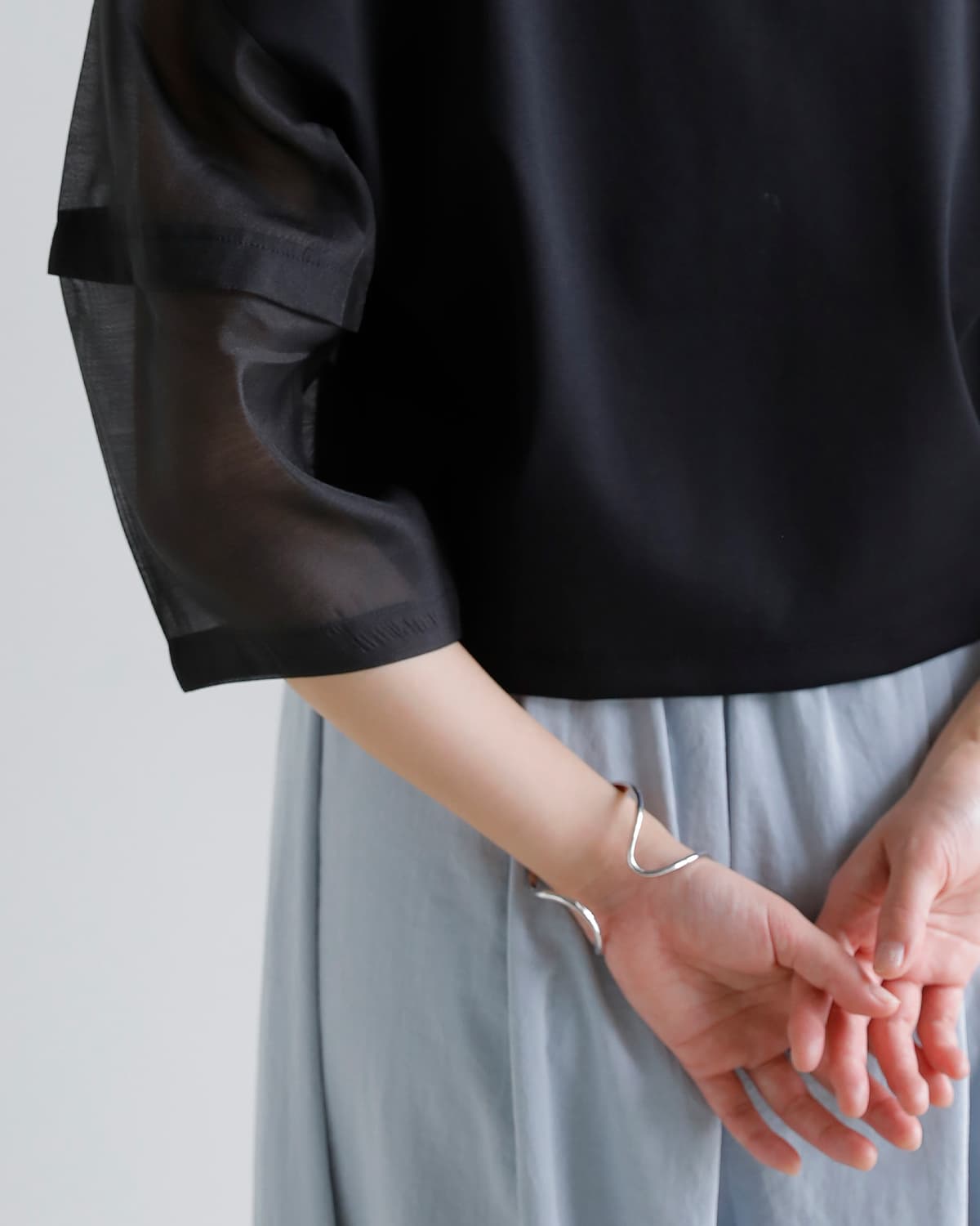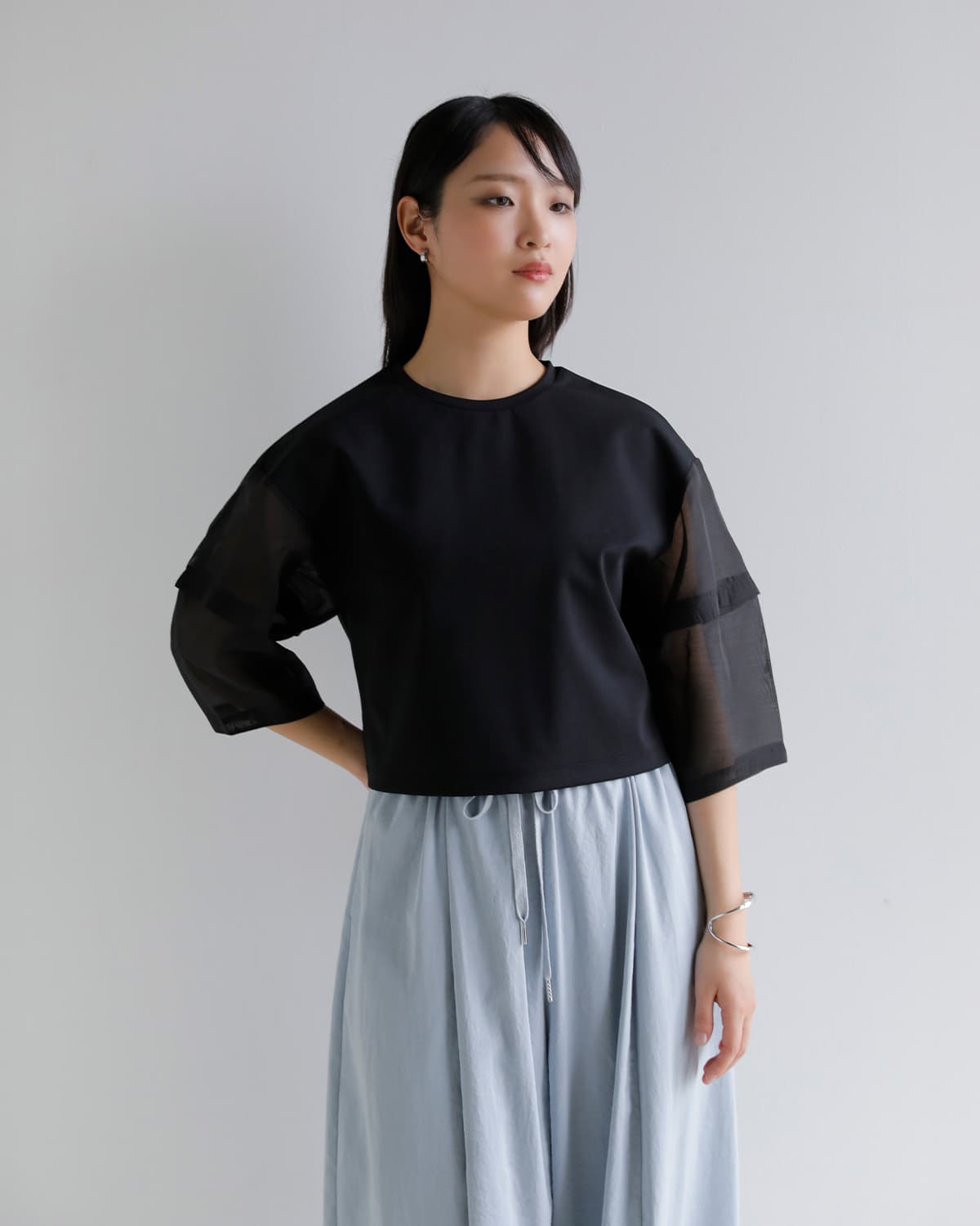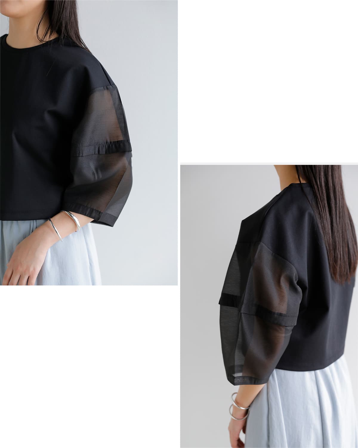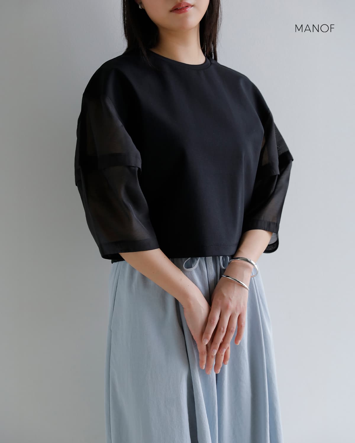 他の画像を見る シアースリーブ異素材ドッキングランタンスリーブショート丈クルーネックストレッチフェミニン軽やか着映えMANOFカットトップス MANOF マノフ シアースリーブ カット トップス 80105-1063 2026ss新作 レディース ¥ 15,400 ¥ 15,400 税込 販売期間 2026/04/15 10:00 〜 カートに入れる お気に入りに登録する