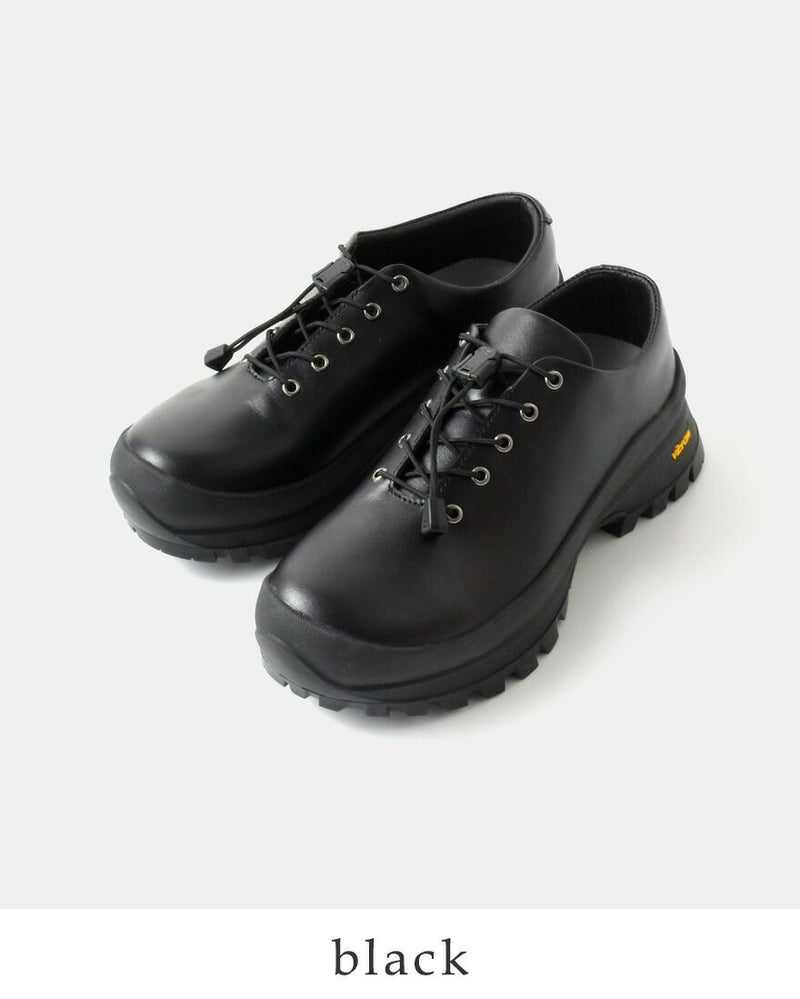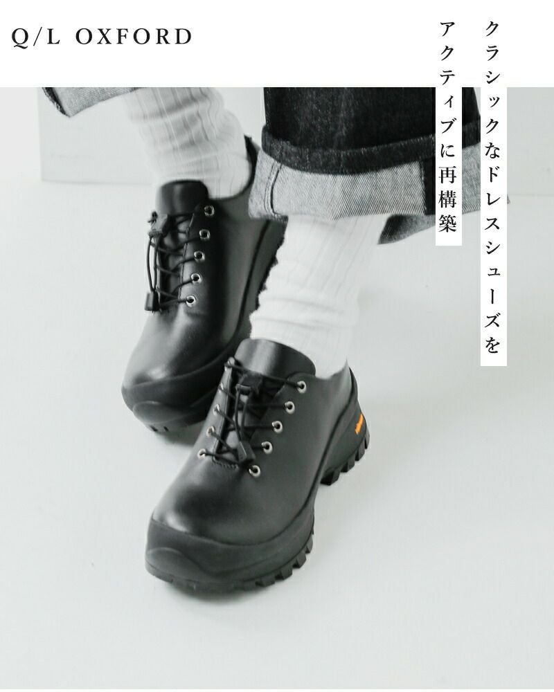 molle shoes(モールシューズ)より、撥水 カウレザー クイックシューレースシステム オックスフォード シューズ “Q/L OXFORD”のご紹介です。内羽式のクラシックなレザードレスシューズをクイックシューレースシステムと「Vibram 884C Bristol」ソールでアクティブに再構築しています。アッパーは履き始めから足に馴染むクロム鞣しを施した柔らかなカウレザーを採用しています。撥水加工を施しているので様々な天候に気を遣わずに着用が可能です。