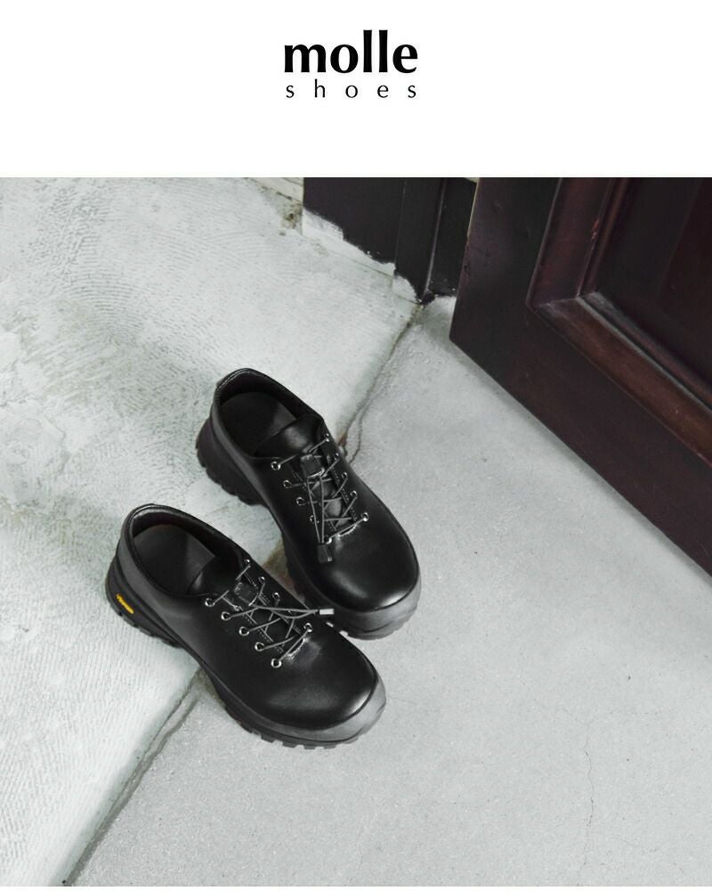 革靴はその長い歴史のなかで、必要に応じてカタチを変えて きました。その歴史のなかで磨かれたデザインは他にはない 魅力がありますが、しかし同時に現在の世の中で求められるのは、 歩きやすく、軽く、着脱しやすい、シーンを選ばずいつでも履ける、 そんな革靴です。歴史ある靴には、これらの要素が欠けているのも また事実です。そこで伝統的な革靴のデザインに敬意を払いながら、 同時に現在の靴に求められる要素を詰め込みました。 ブランド名であるmolle (モール)という言葉には2つの意味が 込められており、様々なミッションに対して装備を最適化 するためにアメリカ軍が開発した通称MOLLE(モールシステム)、 ラテン語で「快適」を意味するmolle(モッレ)。 molle shoes は伝統的な見た目でありながら、軽く着脱しやすい 新しいシューレースレスシューズを提案していきます。