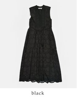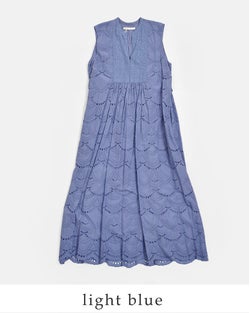 ノースリーブの軽やかさと、裾に向かって広がる柔らかなシルエットが相まって、動くたびにふわりと揺れる涼しげな佇まいに仕上がっています。一枚で着映えするのはもちろん、デニムやパンツとのレイヤードもおすすめ。