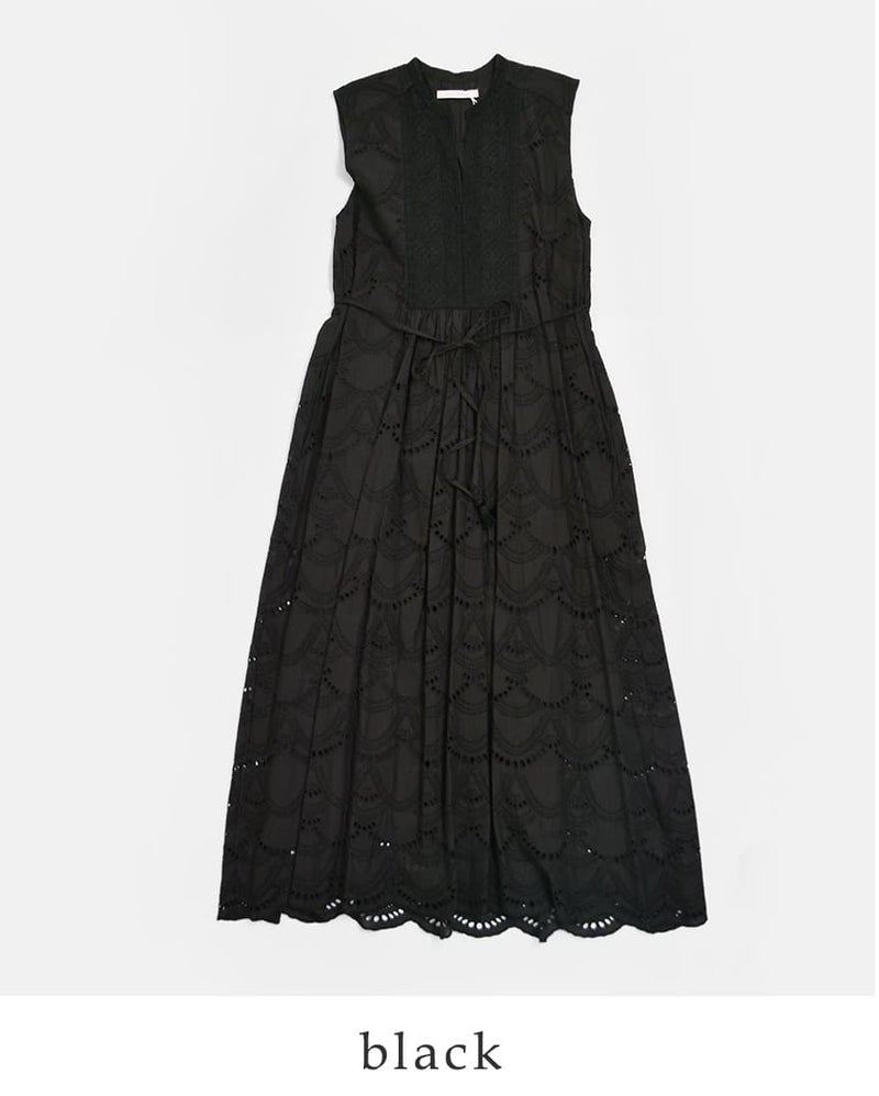 ne Quittez pas(ヌキテパ)より、コットンボイルドットヘムレースノースリーブドレス Cotton Voile Dot Hemla No Sleeve Dress をご紹介します。ふんわりと空気を含むコットンボイル素材は、やわらかく通気性が良く、暑い季節も快適な着心地。裏地付きで透け感を気にせず、一枚で安心して着用いただけます。インドのトライバルアート「ゴンド」に着想を得たドットモチーフを、繊細なヘムラ刺しゅうで表現。裾のヘムレースが動くたびにやさしく揺れ、さりげない華やかさをプラスします。ノースリーブのすっきりとしたデザインと、リラックス感のあるシルエットで、一枚でもレイヤードでも活躍する一着です。