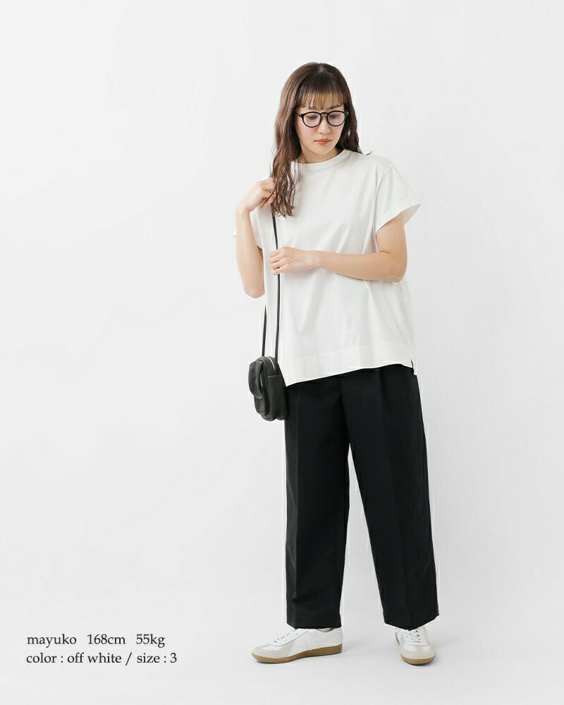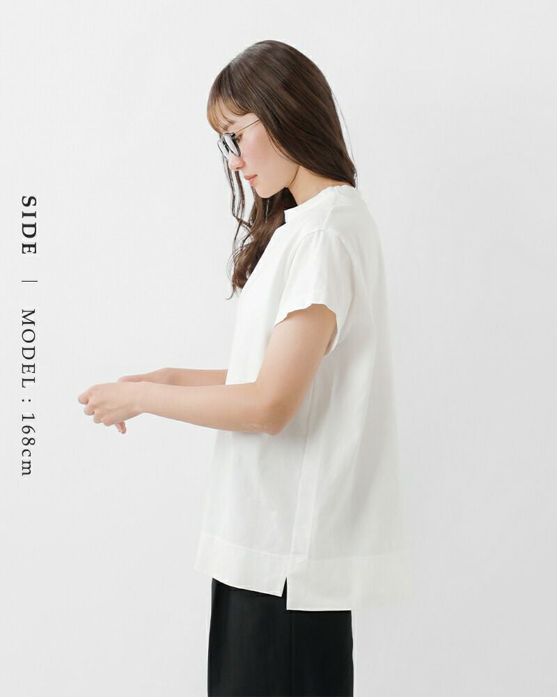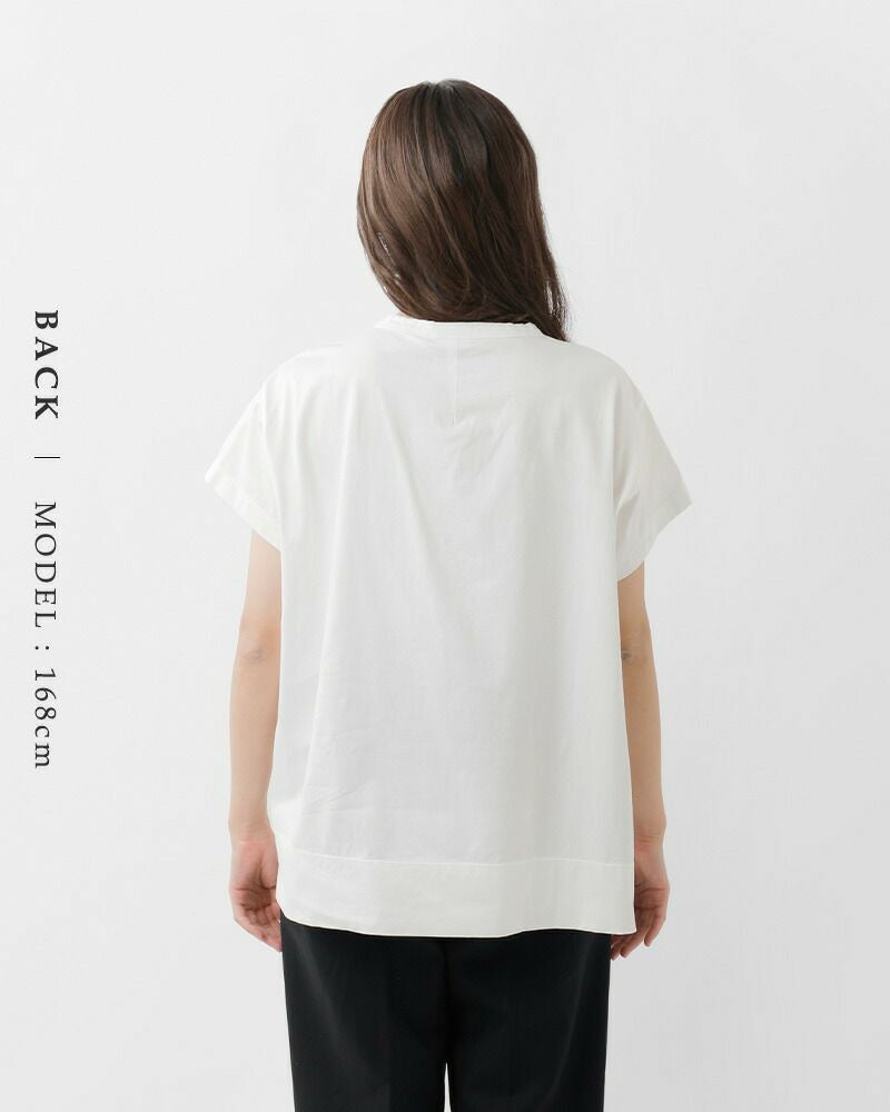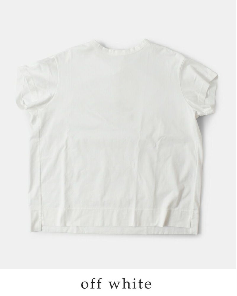 首回りは大きく開きすぎないやや詰まったデザインで、Tシャツながらもきちんとした印象です。