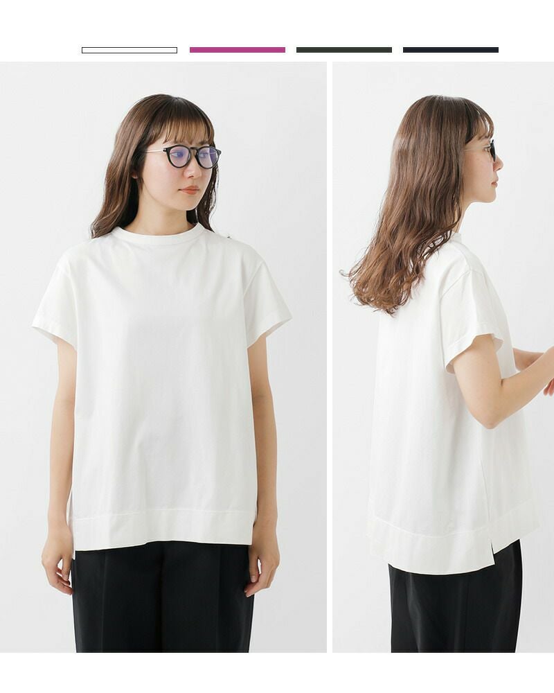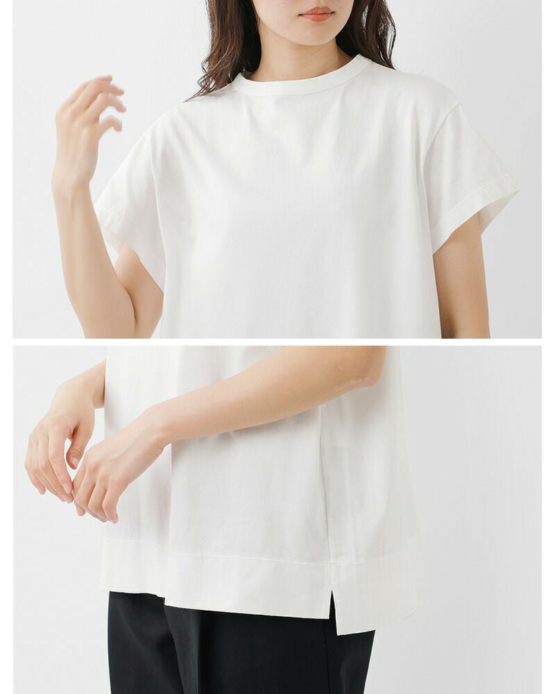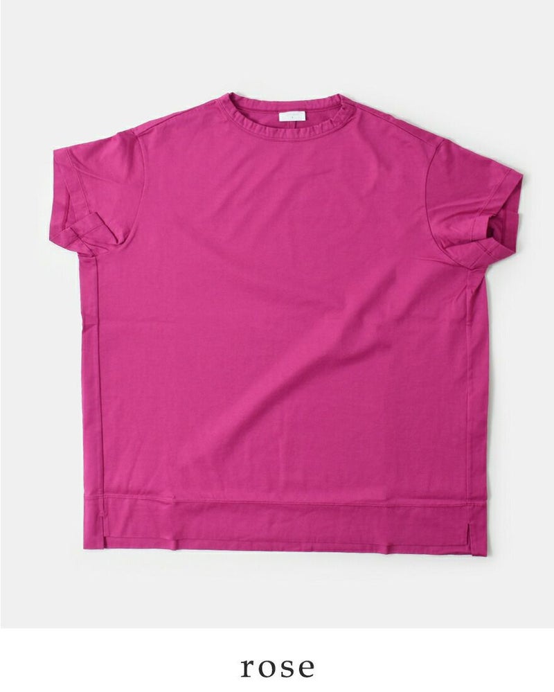 ゆるめの身幅が着心地の良い3分袖のカットソー。二の腕を優しく隠す袖丈で、気になる部分をしっかりとカバー。両サイドにスリットが入っているので一枚で着てもこなれた雰囲気に。定番に使いやすいカラーから、コーデの主役になるローズカラーまで4色展開。