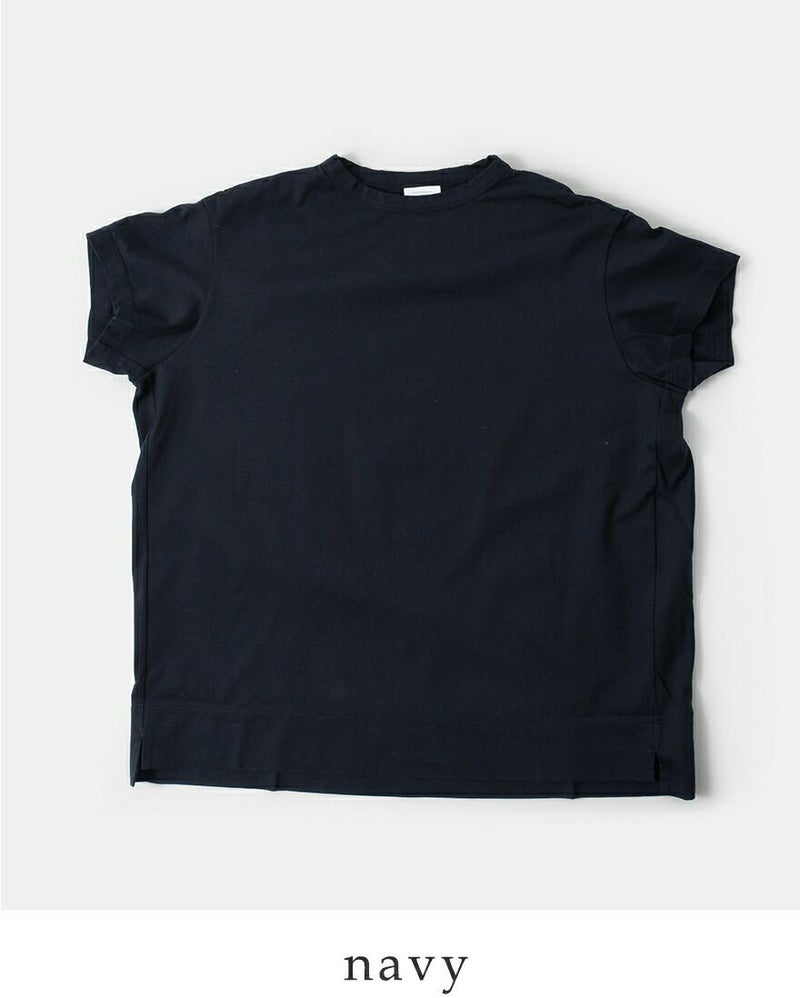 夏場にさらりと一枚でももちろん、詰まった首回りを活かしてレイヤードのインとしても大活躍。ユニセックスで使えるデザインです。