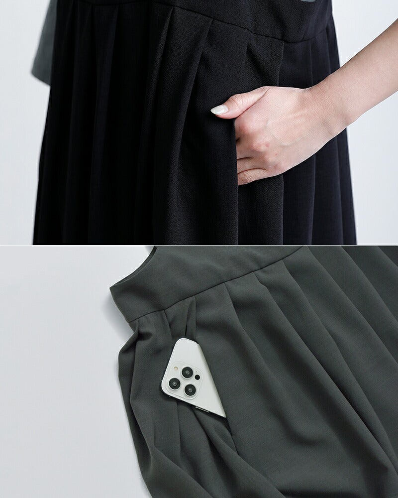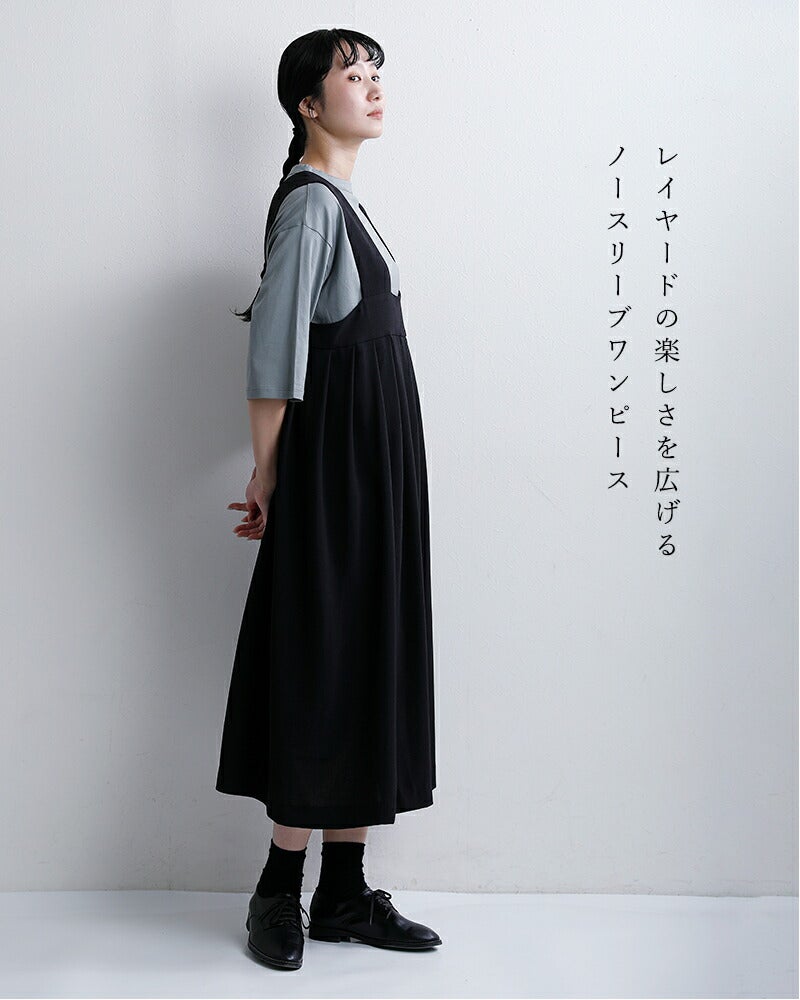 NOCONTROLAIR(ノーコントロールエアー)より、スパンドレープカルゼジャンプタックワンピースのご紹介です。深めのスクエアネックとプリーツが印象的な一枚。アームホールが大きく取られているので、様々なインナーとのレイヤードもお楽しみ頂けます。きれいなドレープが目を惹き、大人の品のある印象に仕上げています。合わせるトップス次第でロングシーズン着回し可能なアイテムです。