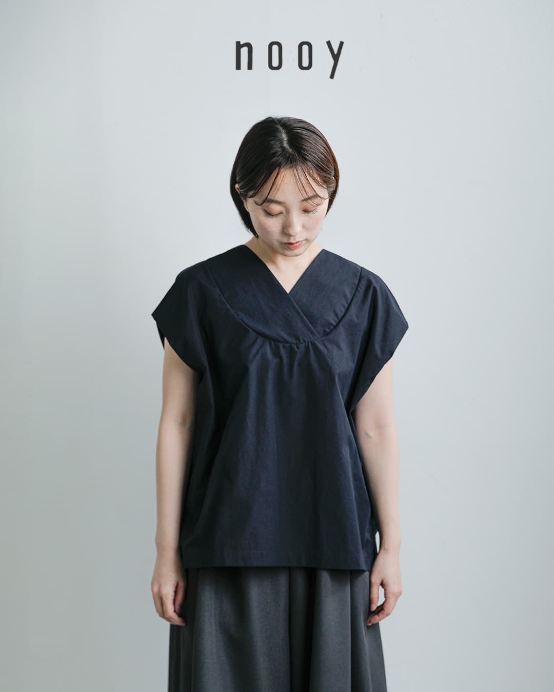 デザイナー:若山夏子 平山良佳 nooy(ヌーイ)はファッションを楽しむ全ての女性に向け、クラシックなラインをベースに 独自の遊び心と時代のスパイスを加え、自由なスタイルを提案しているレディースウェアブランド。 上質で心地よい素材使い、繊細な色使い、メンズのパターンを取り入れたカッティングがその特徴。 デザイナーはそれぞれNYでデザイナー・パタンナーとして活躍したのちnooyを立ち上げ。 彼女たちの「好きなもの」が詰まったウェアは年齢を問わず多くの女性から支持を得ています。 またコレクションラインと並行し、ユニフォームラインnooy kitchenを展開し、カフェ等のユニフォームデザインも手がけている。 そのほか定期的に洋服や小物作りの本を出版する等、幅広く活動しています。