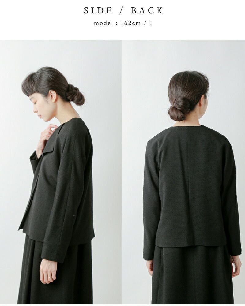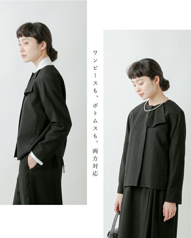 短めの着丈が凛とした美しい立ち姿にしてくれます。長袖と、短めの丈感で、コントラストがつき、メリハリのある着こなしをお楽しみいただけます。