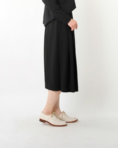 nooy(ヌーイ)より、接結ジョーゼットシネマスカートのご紹介です。シンプルなデザインでオケージョンにも着用できるお呼ばれスカートです。フロント右側にのみプリーツがあしらわれたアシンメトリなデザインがかわいいです。ウエストはゴムなので、シワになりにくく美しいドレープが生まれるのも魅力です。マットな光沢感でかっちりとしすぎない飾り過ぎないおでかけスタイルになります。同生地を使用したプルオーバーとのセットアップスタイルもおすすめです。