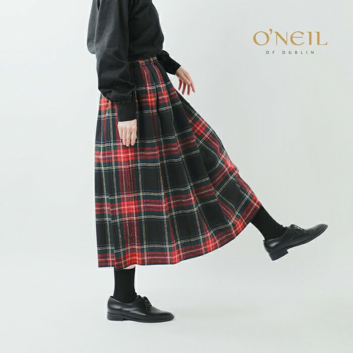 毎年人気を誇るO'NEIL OF DUBLIN(オニールオブダブリン)の ウール ブレンド タック チェック ロングスカートをご紹介します。流行に左右されず、永く愛されるO'NEIL OF DUBLINのスカートは、ブリティッシュトラディショナルの定番です。カジュアルにもキレイめにも着こなせて、他にはない品の良さを感じる特別感のある一着です。長すぎず、ブーツや靴下をチラリと見せて様々な着こなしが楽しめる一枚です。オニールならではの落ち着いたチェック柄で、雰囲気たっぷりのロングスカートに仕上げています。
