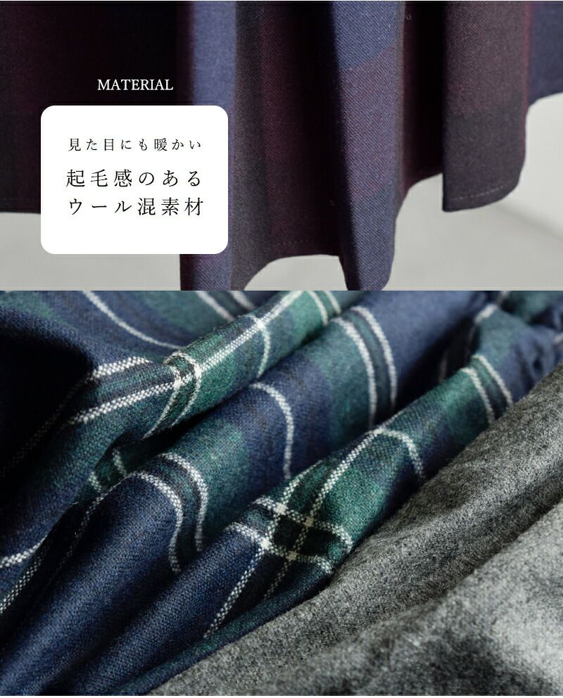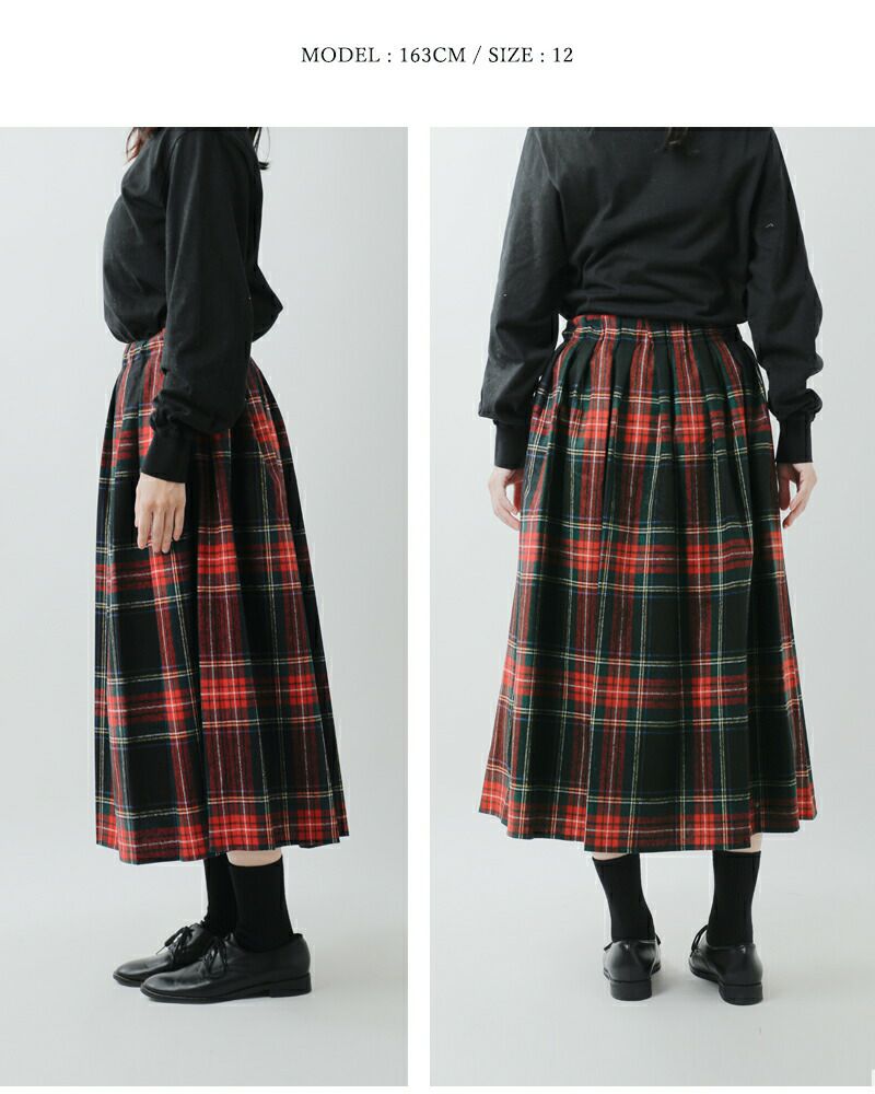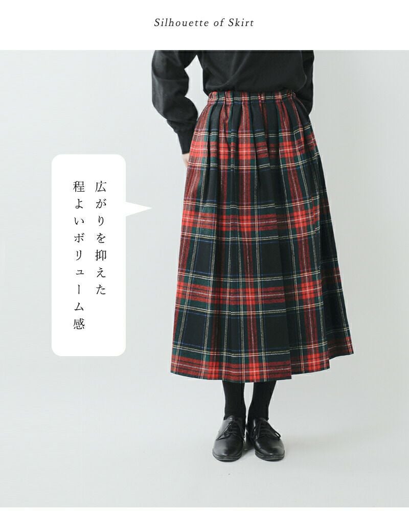aranciato別注ウールブレンドタックチェックロングスカートs26582