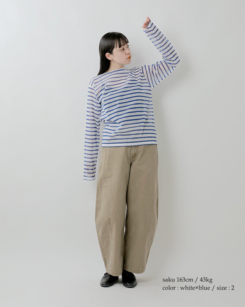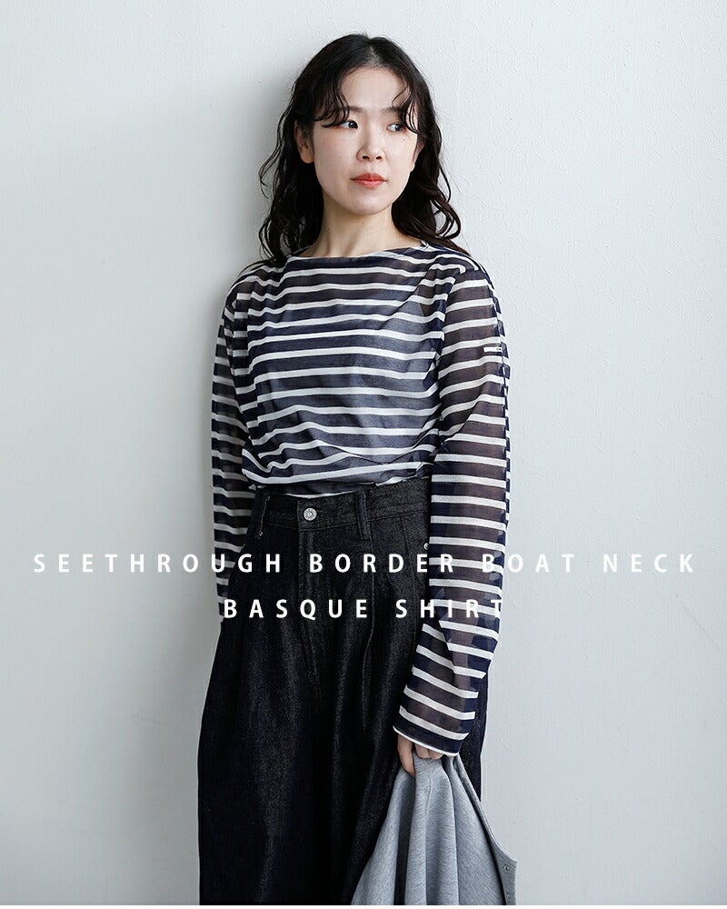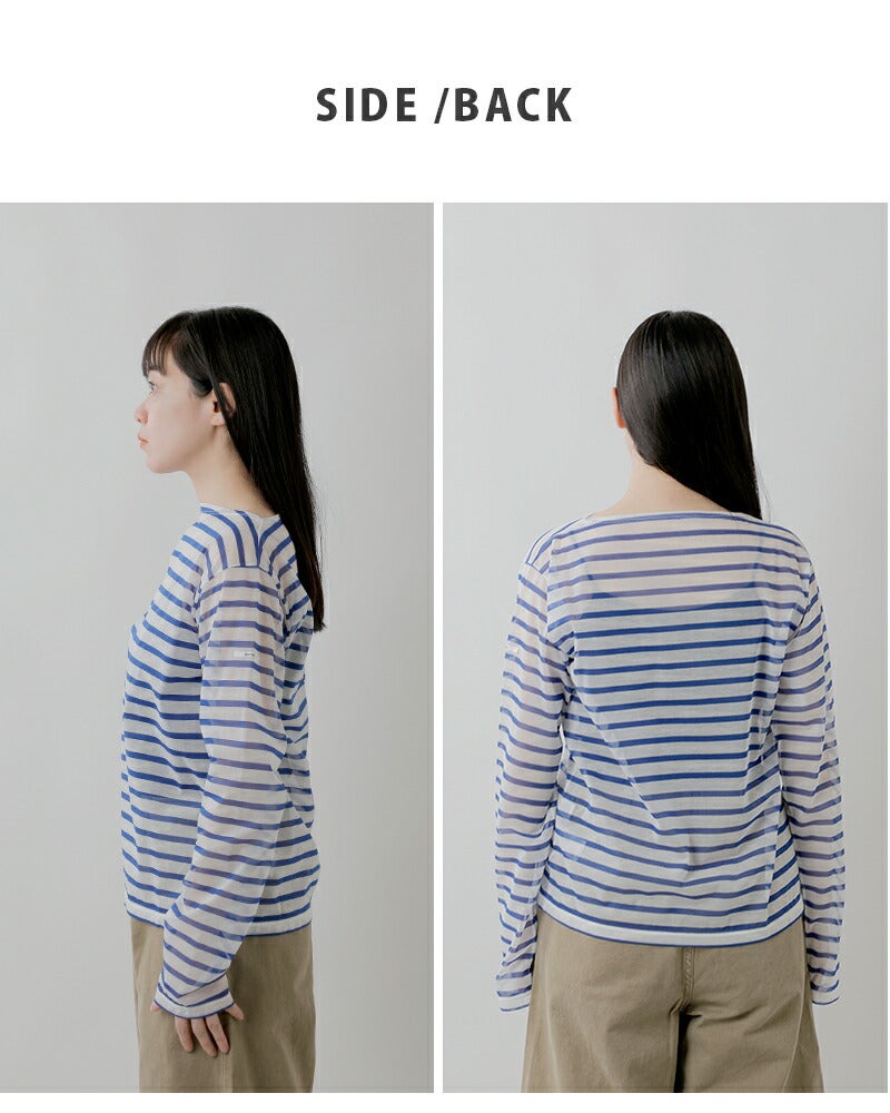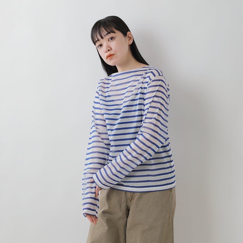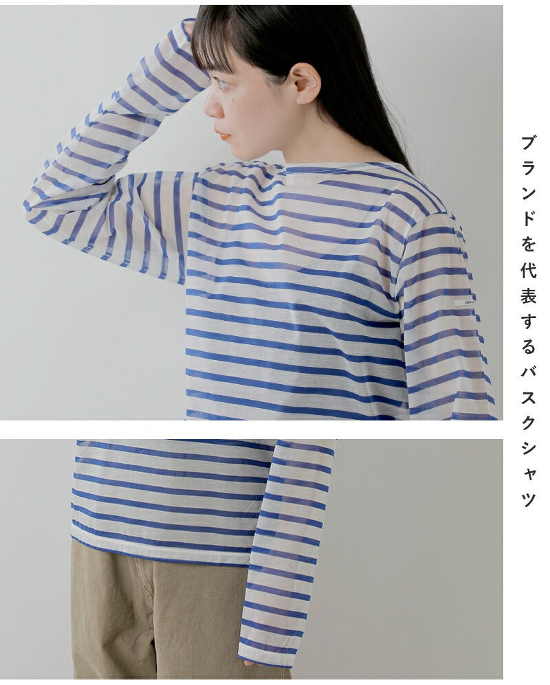 ORCIVAL(オーチバル・オーシバル)よりシースルー ジャージー ボーダー ボートネック 長袖 バスクシャツのご紹介です。ブランドを代表するバスクシャツをトレンド感のあるシースルーにアレンジした長袖カットソー。独特のシャリ感を持つ糸を使用したハリのある天竺素材で、清涼感のある着こなしをお楽しみいただけます。