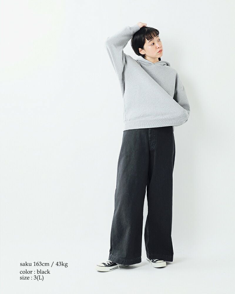 股上深めでゆったりとしたワイドシルエット。無骨さとラフさを兼ね備えたバランスの良いフィット感です。