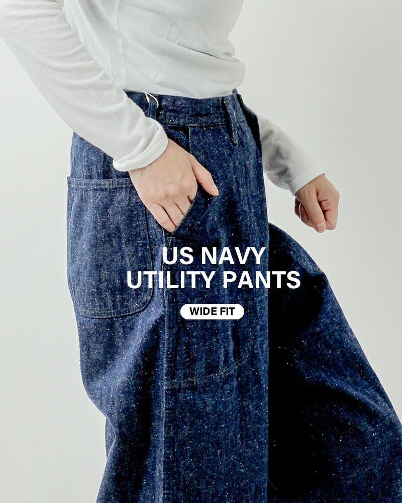 ワイドフィットUSネイビーデニムユーティリティパンツ01-v5130