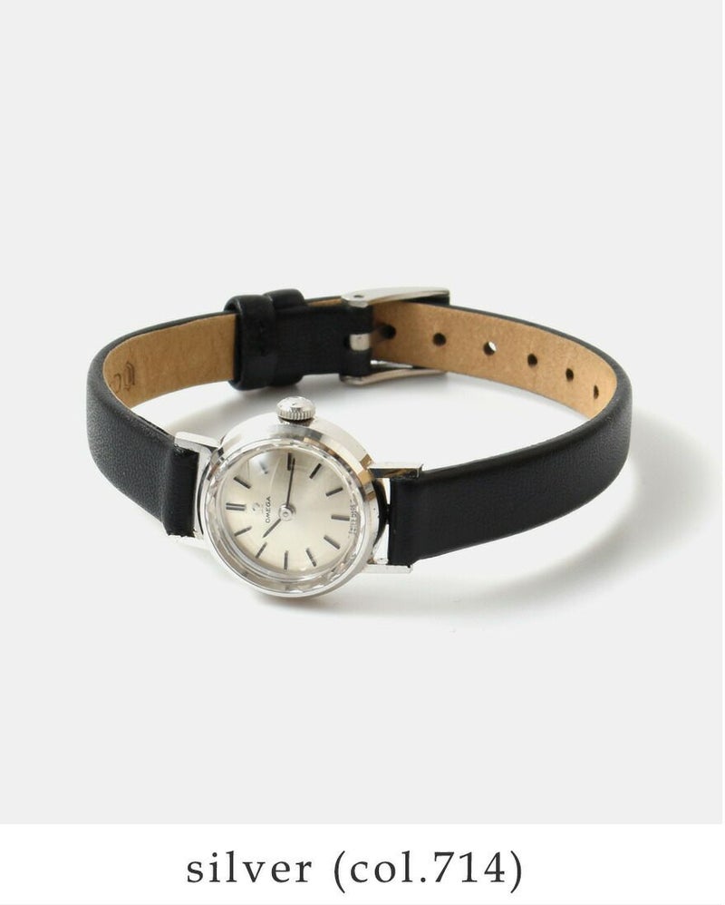OMEGA(オメガ)より、ステンレス ヴィンテージ ウォッチのご紹介です。1960年代後半製造のアンティーク時計です。小ぶりなシルバーのケースに細いレザーのストラップが華奢なデザインで、コーディネートにも自然に馴染みます。気品溢れるデザインはどんな装いにもマッチし、年齢を問わず永く愛用できる1本としておすすめです。