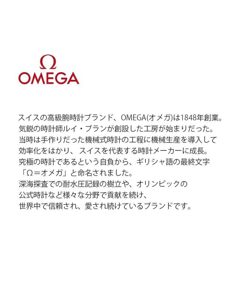 スイスの高級腕時計ブランド、OMEGA(オメガ)は1848年創業。 気鋭の時計師ルイ・ブランが創設した工房が始まりだった。 当時は手作りだった機械式時計の工程に機械生産を導入して 効率化をはかり、 スイスを代表する時計メーカーに成長。 究極の時計であるという自負から、ギリシャ語の最終文字 「Ω=オメガ」と命名されました。 深海探査での耐水圧記録の樹立や、オリンピックの 公式時計など様々な分野で貢献を続け、 世界中で信頼され、愛され続けているブランドです。