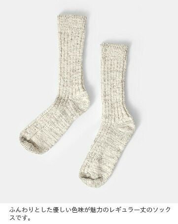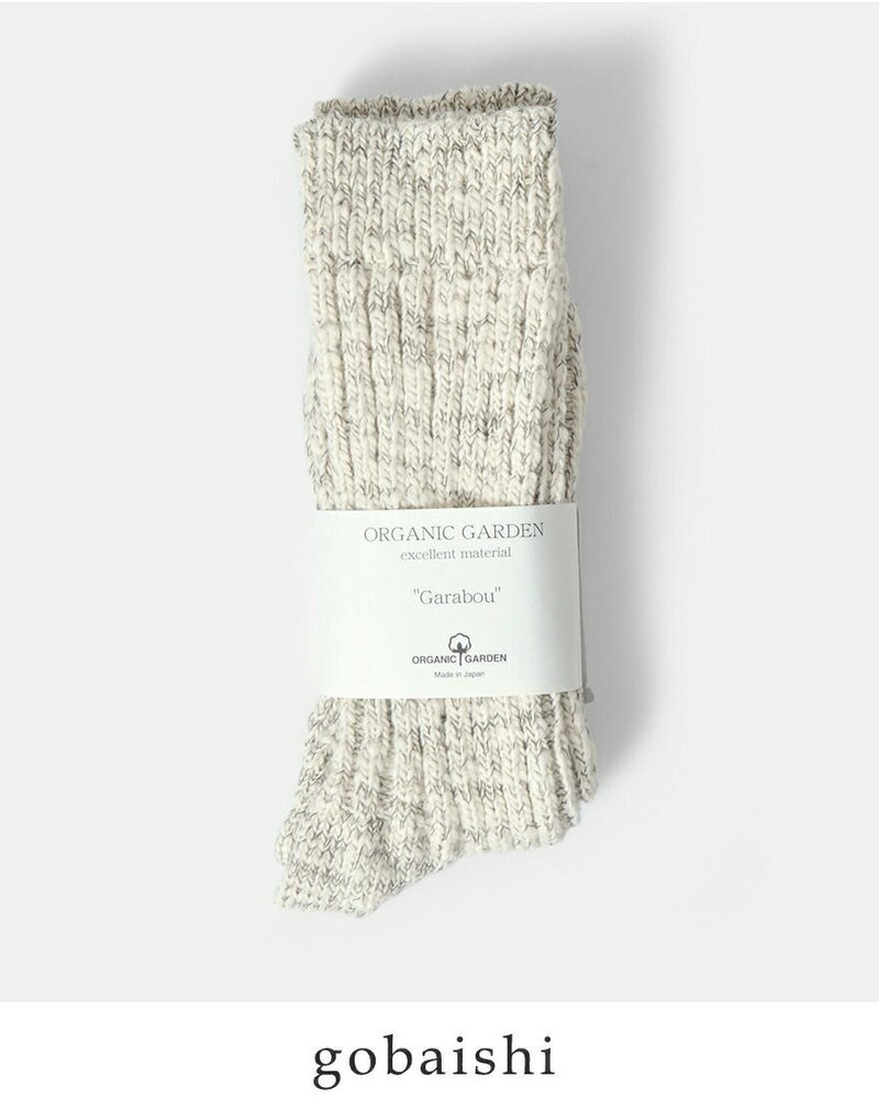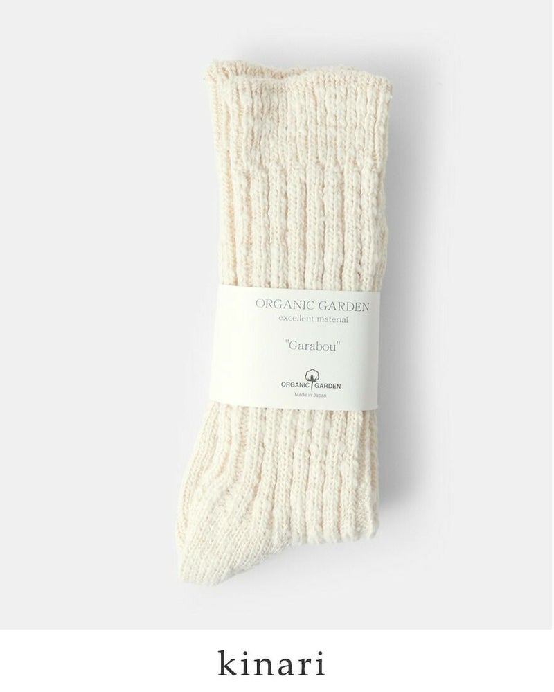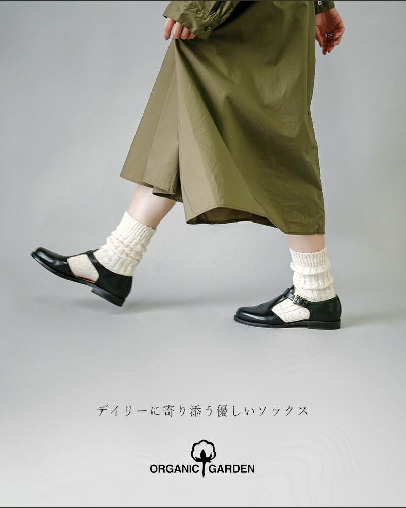ORGANIC GARDEN(オーガニックガーデン)より、レギュラー丈オーガニックコットンガラボウソックスのご紹介です。オーガニックコットンの落ち綿を使用し、ガラ紡績機で丁寧に編み立てた手紡ぎのような風合いが特徴です。ふっくらと厚みがあるので履き心地が良いのも嬉しい。長めのレギュラー丈は、くしゅくしゅとたるませても可愛いですね。ガラボウシリーズは糸の性質上、一点ずつやや個体差があり、まるで一点物のような表情豊かさも魅力です。