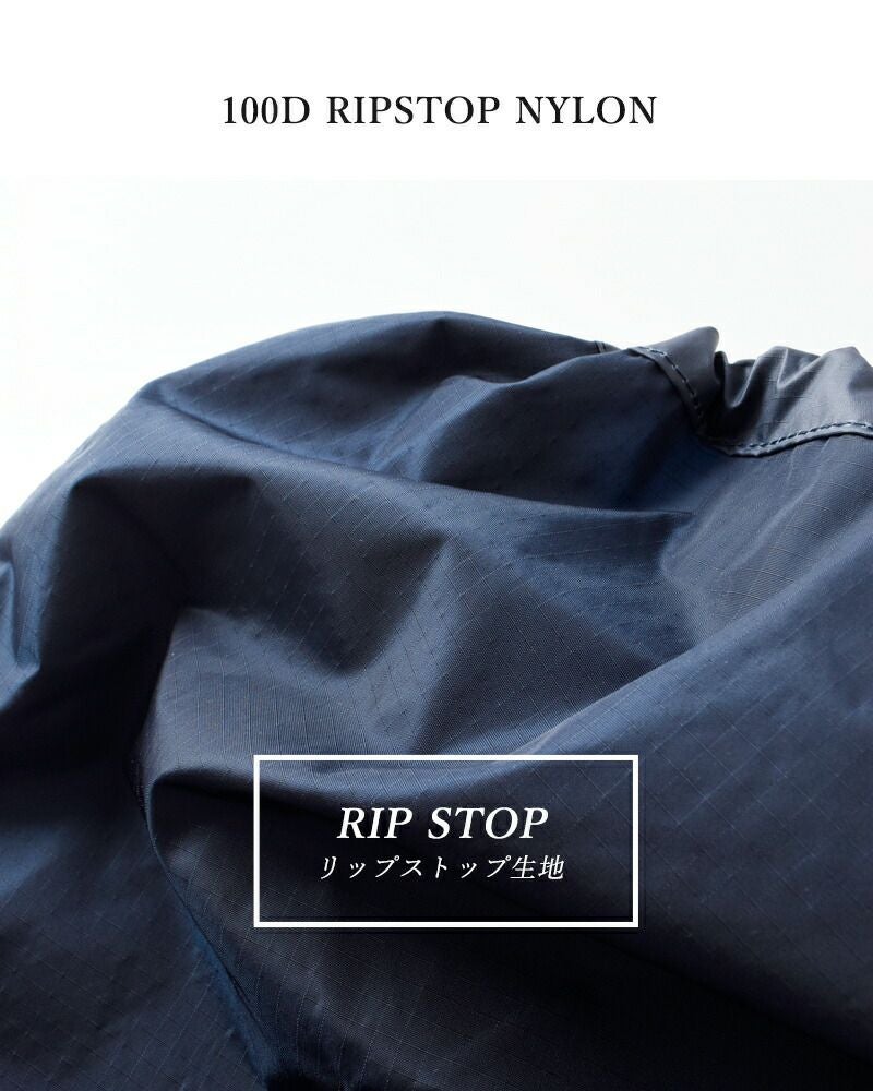 基盤の目状に繊維を縫い込ませることで、「Rip (裂ける)」 こと を「Stop (食い止める)」素材、リップストップ生地を採用。軽 量ながらも丈夫な素材なので、しっかりと荷物を守ります。