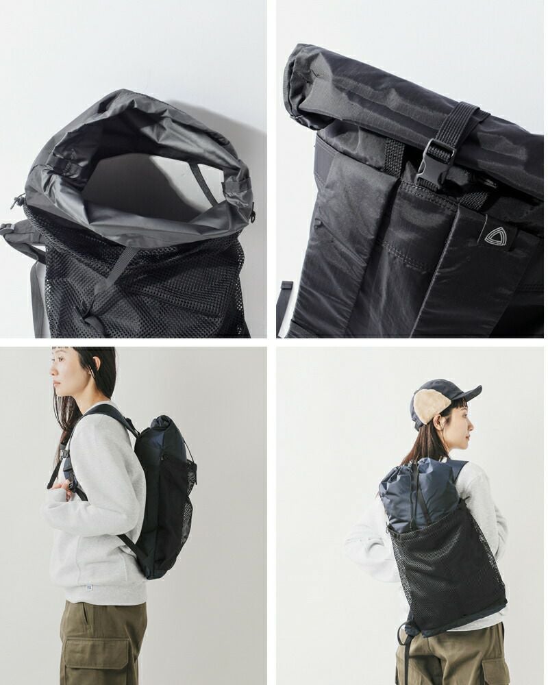 ●ロールトップで開閉する仕様。荷物の多さによってスライ ダーで長さを調節することができます。