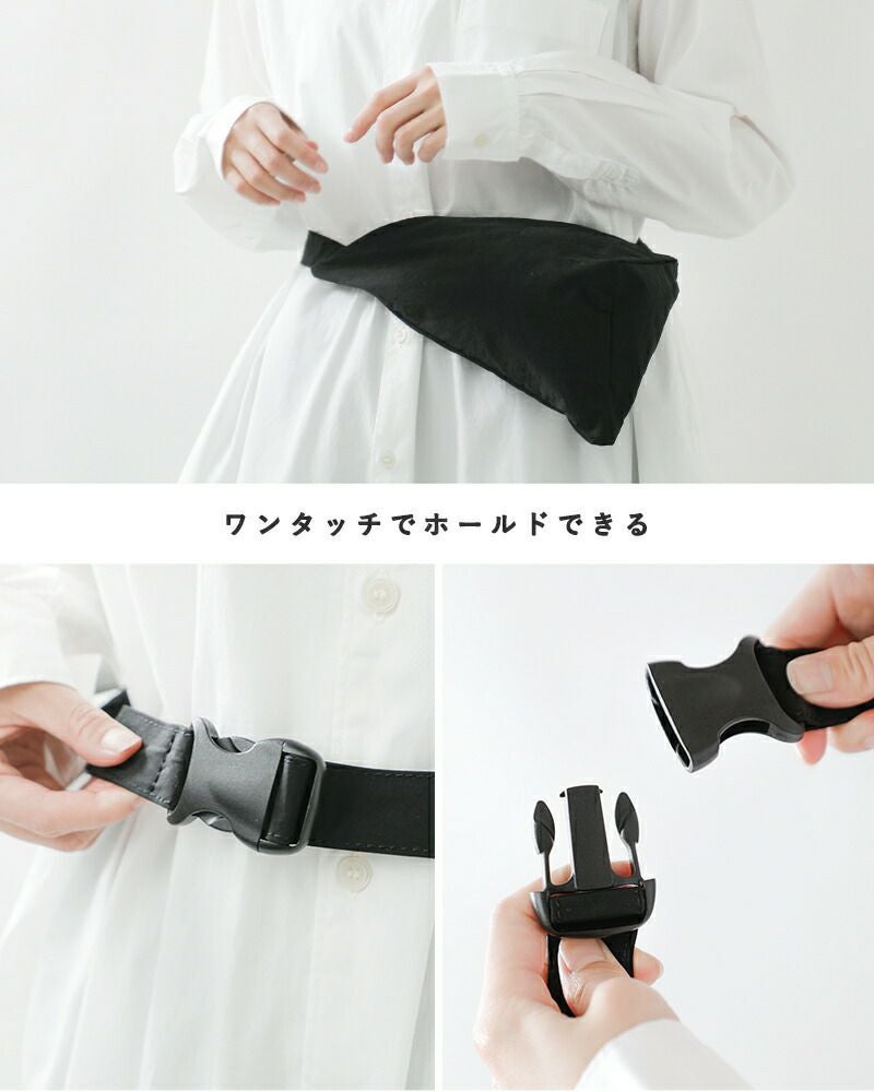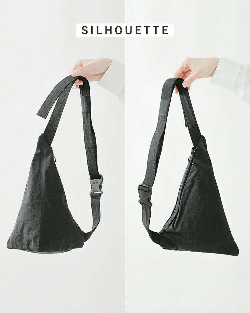 二等辺三角形をイメージしたバッグはウエストポーチ、ショルダーバッグ、斜め掛けバッグとしてお使い頂ける3way仕様。