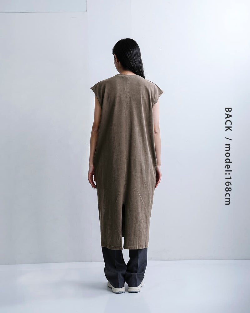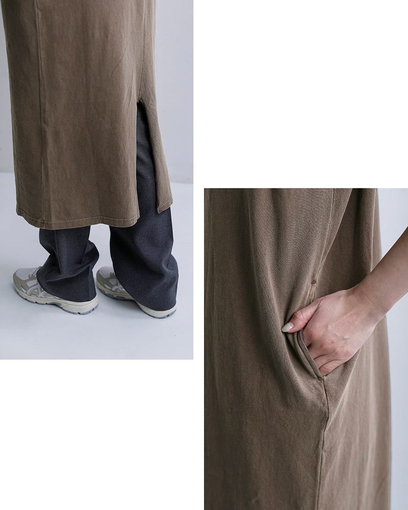 バック裾にスリットを施し、足さばきの良い仕様でレイヤードにもぴったり。両サイドには便利なポケット付きです。