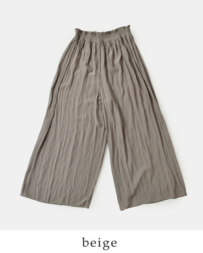 ウエストは全面ゴム仕様で、着脱もスムーズ。締め付け感が少なく、一日中快適に過ごせます。さらに、ゴム部分にはフリルのようなさりげない装飾を施し、タックインスタイルではウエスト周りが華やかなアクセントに。