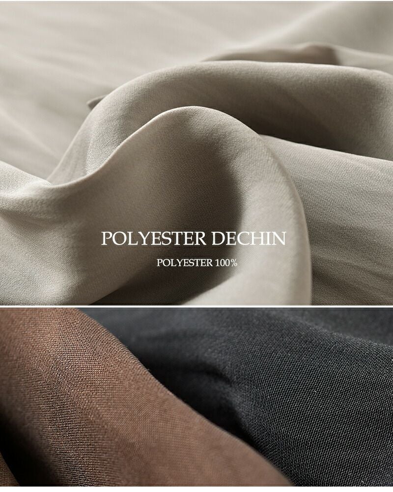 軽やかな風合いと上品な光沢を併せ持つポリエステルデシン素材を採用。細やかなシボ感が生み出す豊かな表情と、美しく揺れるドレープが特徴です。