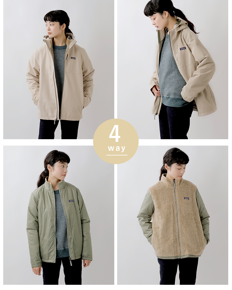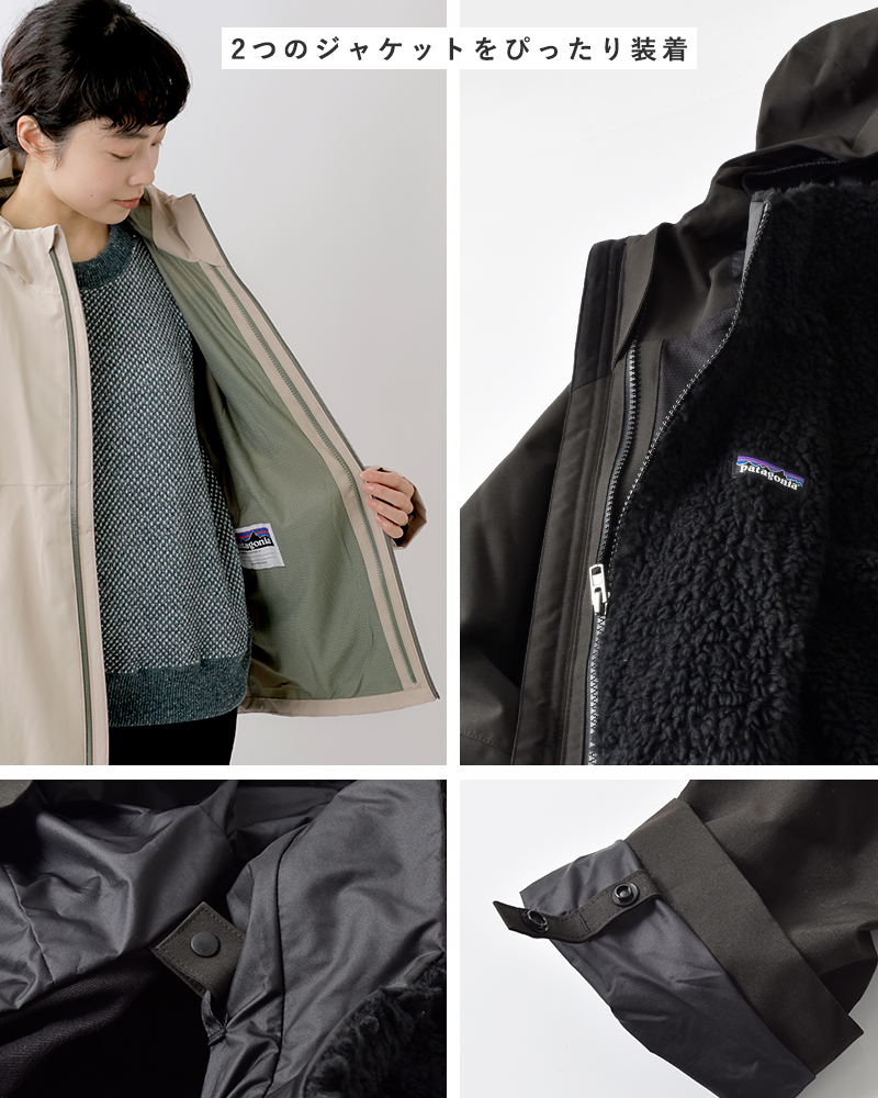 パタゴニアより、2つのジャケットの組み合わせで4通りの着こなしを楽しめるジップアップブルゾンが届きました。軽量のメインジャケットと、フリースパイル付きのインナージャケットは、どちらも単体で使うことができ、春・秋から真冬までの3シーズン使えるアウターとなっています。