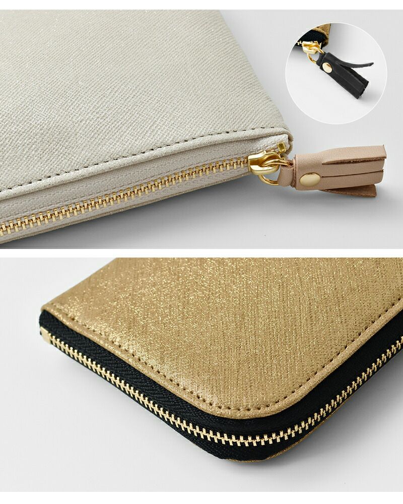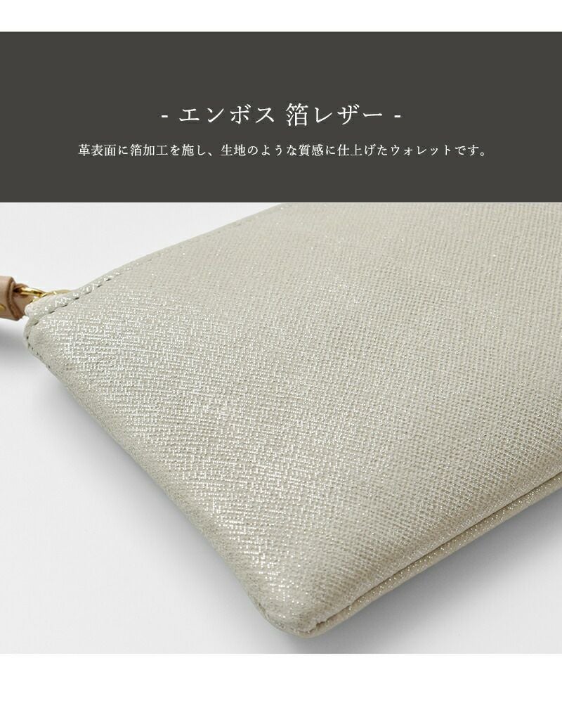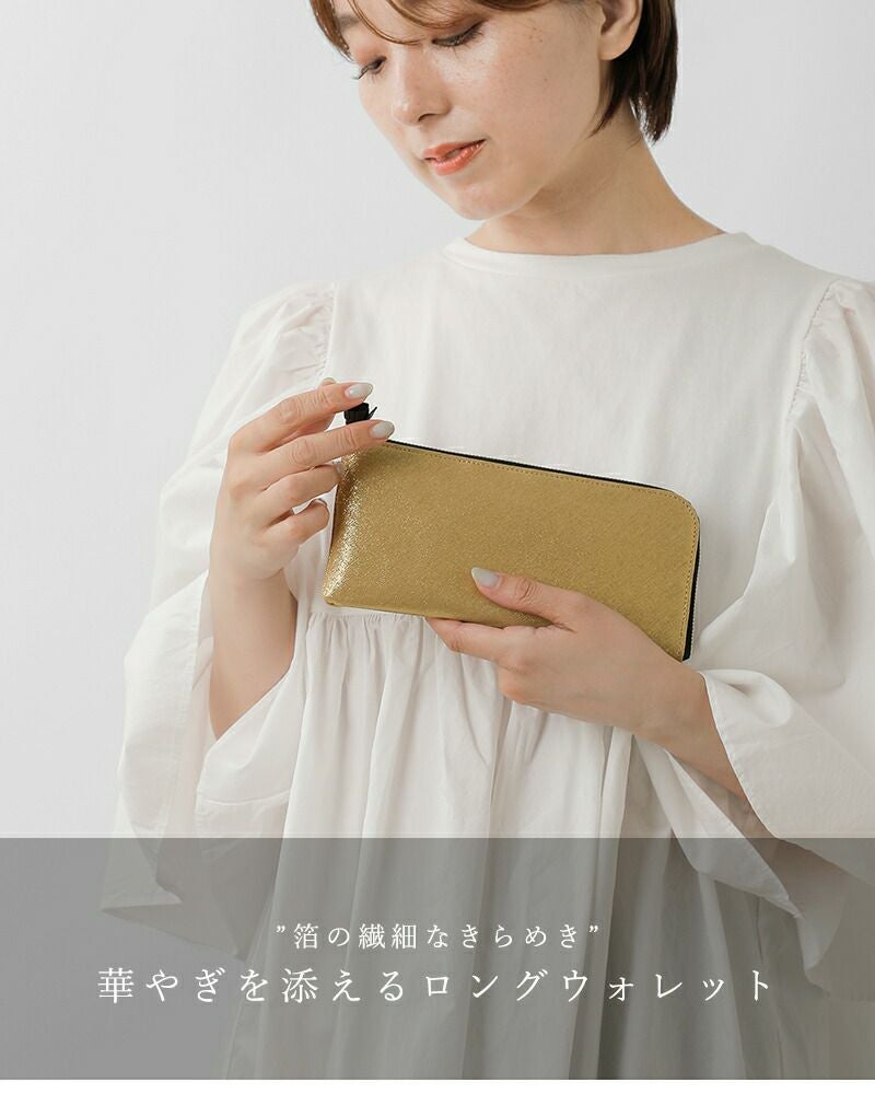 革表面に箔加工を施し、生地のような質感に仕上げたウォレットです。手なじみの良いなめらかな手触りが魅力です。
